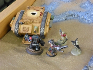 The superheavies trundle on. The Valdor misses the gargant and the Baneblade ends up with a gun crew shaken on the Gargant’s observation tower.