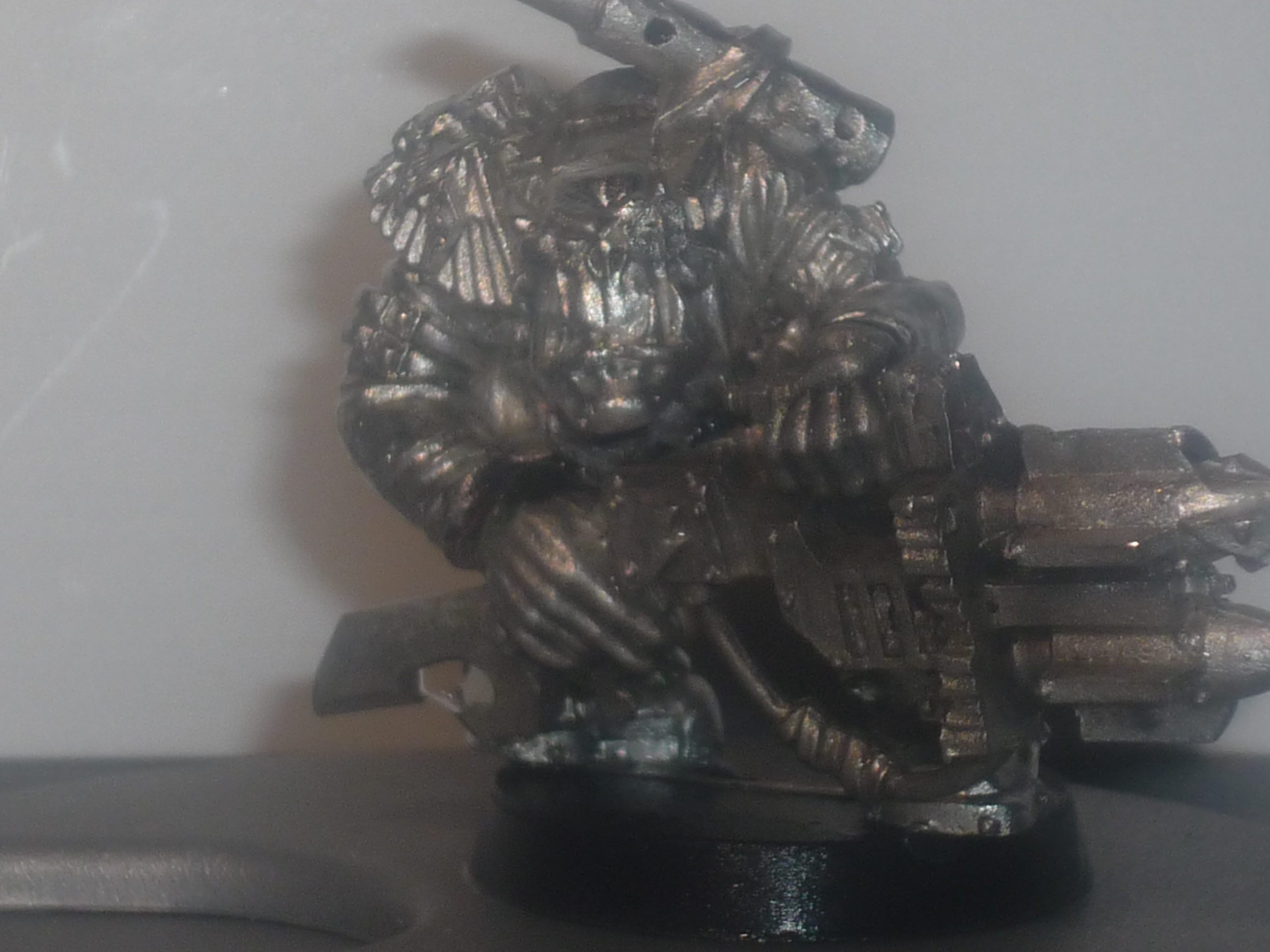 @hungryp- Thanks, I use a dark green base then paint a pale green on top of the ork skin, leaving the dark coat in still showing, Highlight with a mix of bleach bone and kharloc green, then wash green done!