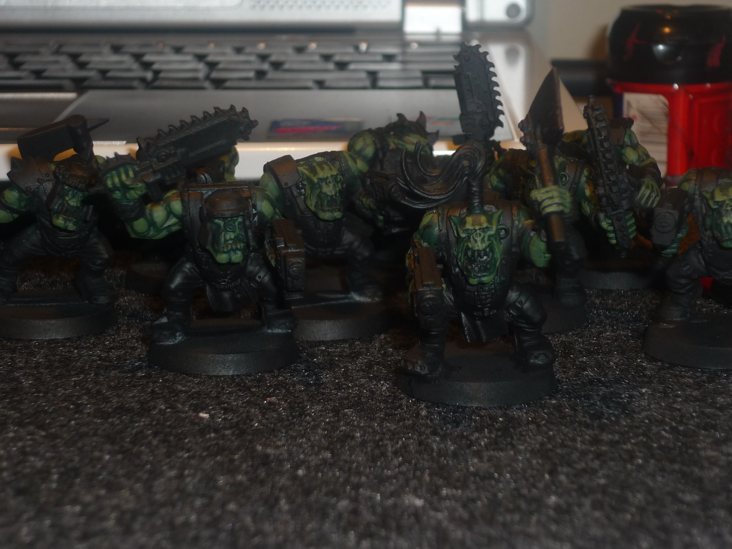 Here are some orks I have completed, and some marine stuff I painted along the way. 10 more orks today so I will post progress.