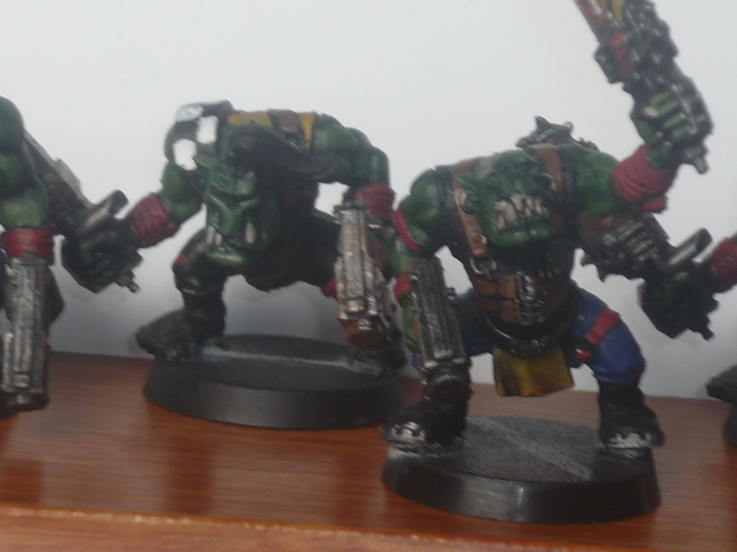 All the orks are at the almost done stage, just need to highlight the black, red, and blue clothing.