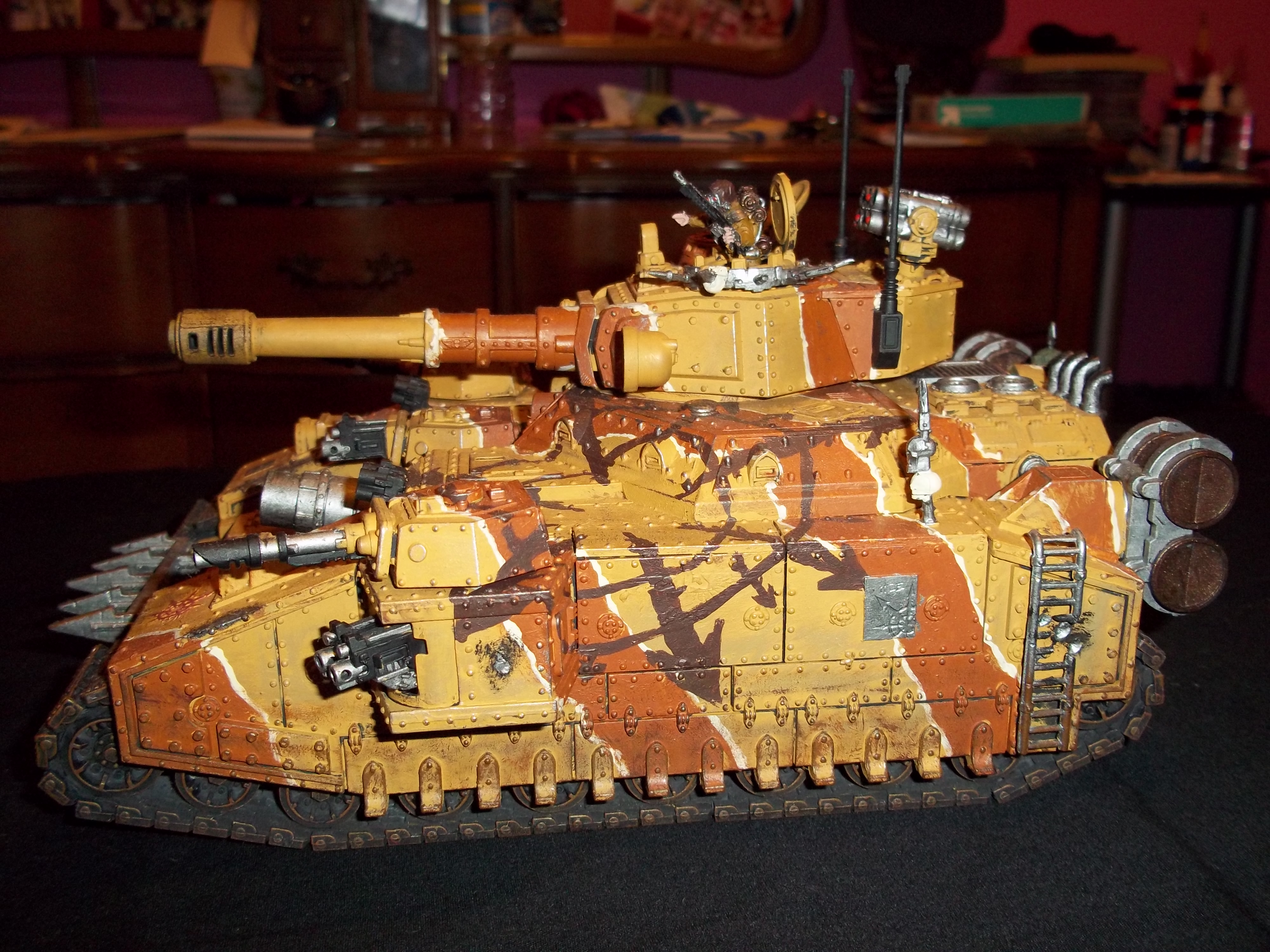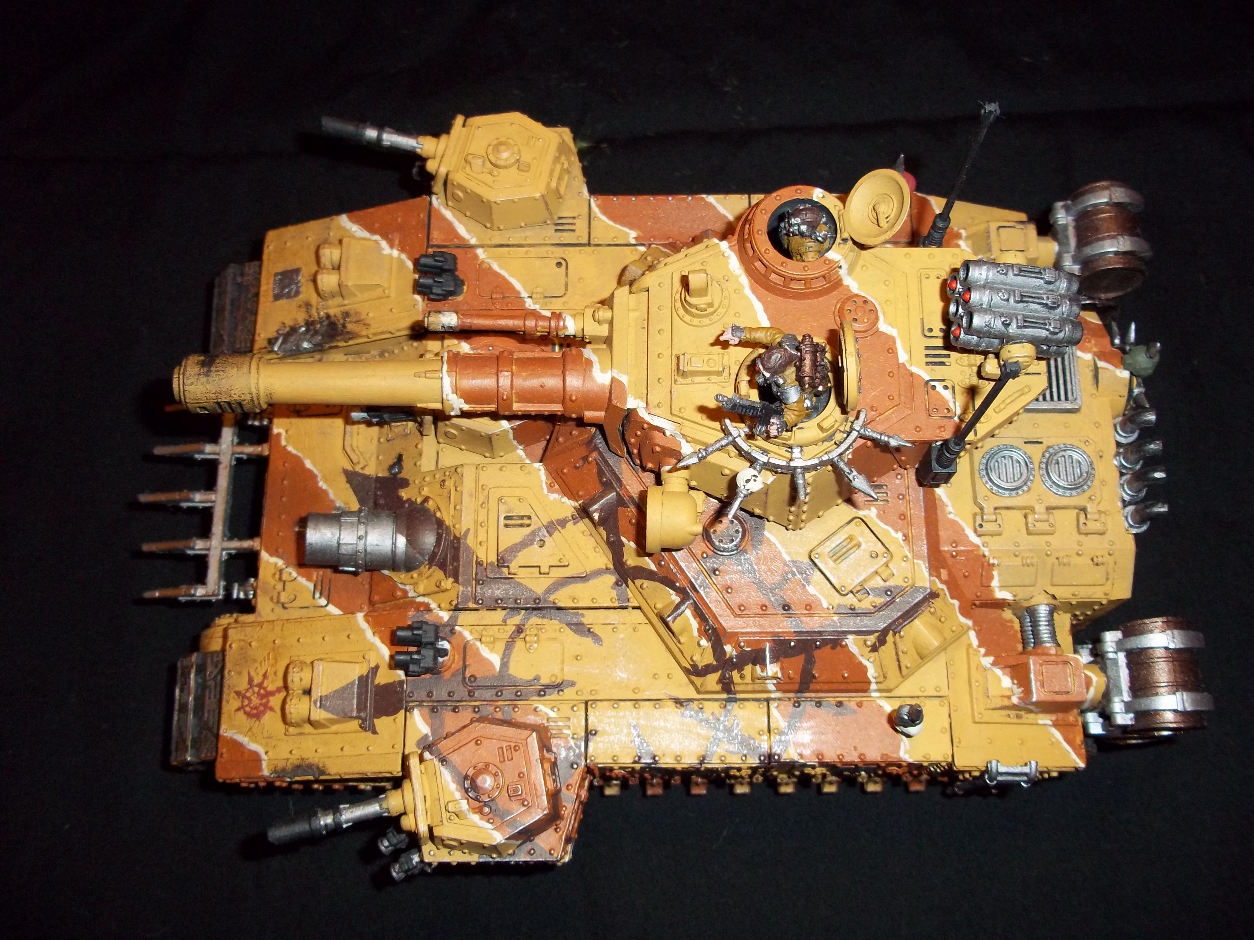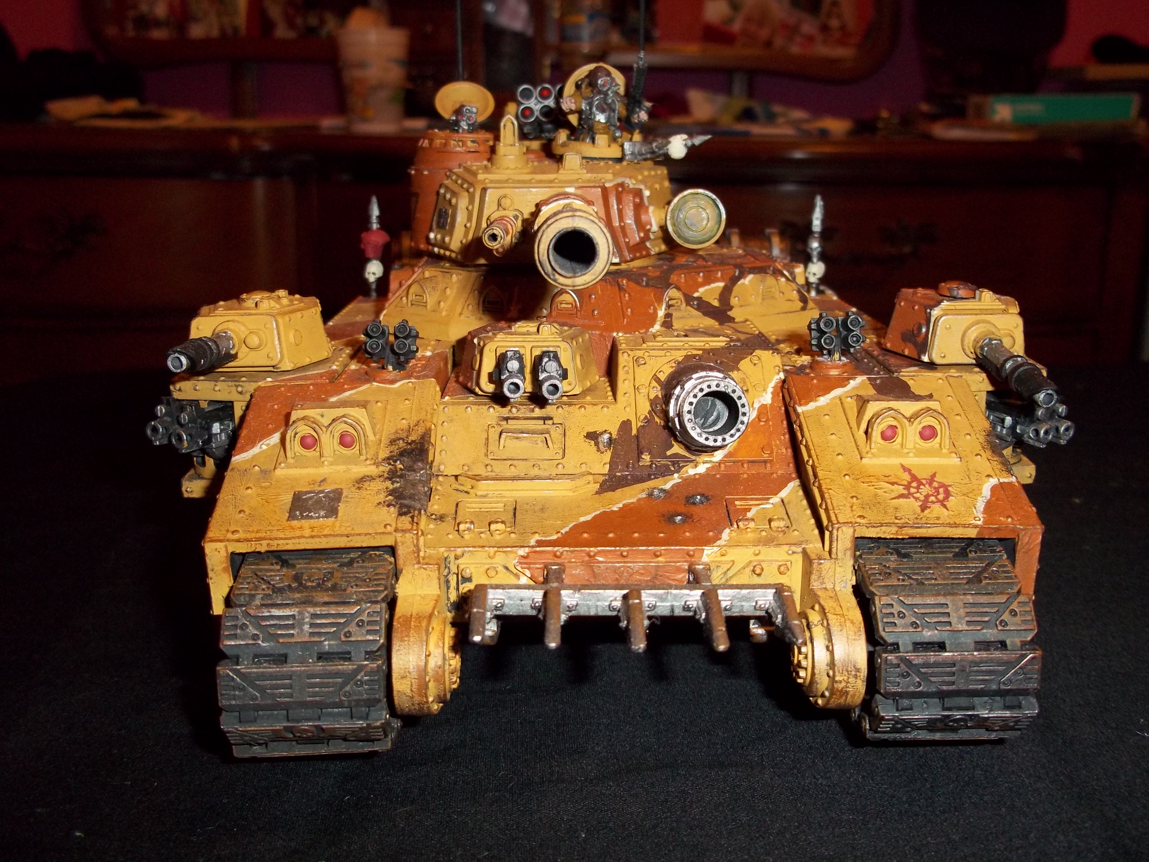 The chaos star on the baneblade is pretty striking. I like it a lot. The only thing I could suggest is to maybe run a brighter color around the edges of the brown to really make it POP.