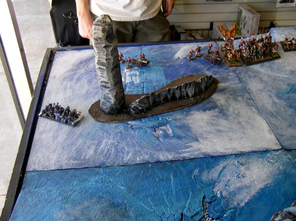 Man of the match: Scree slope. Just kidding but only kind of. The swordsmen unit took something like 6 turns of damage by charging and fleeing along this thing, and it did more damage than any model in the game- killing 17 swordsmen.