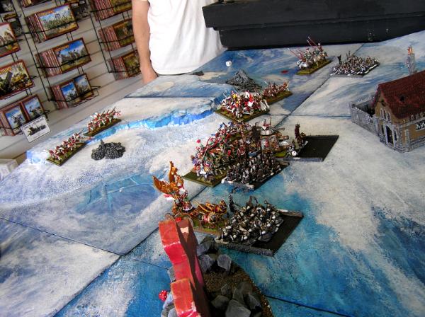 - We had a bit of discussion afterwards and agreed the Empire really didn't need to advance. With magic and shooting, he probably could have afforded to hold back instead of charging across the board. At the very least, the knights and arch lector going solo into each stack of warriors with shields was a mistake.
