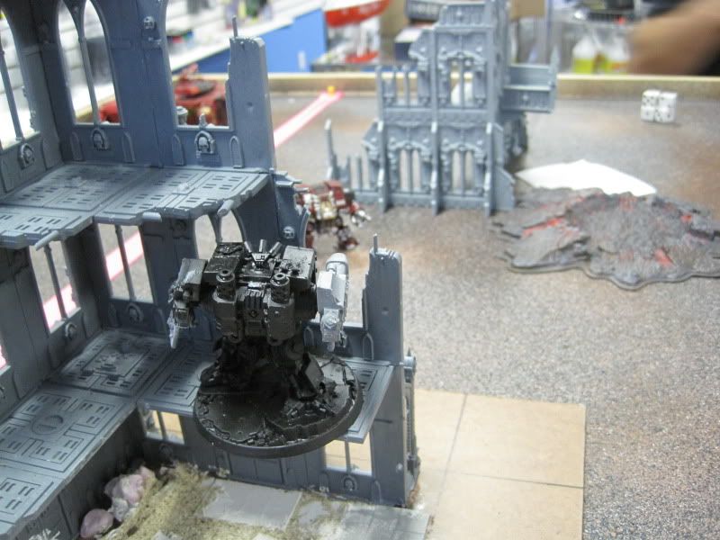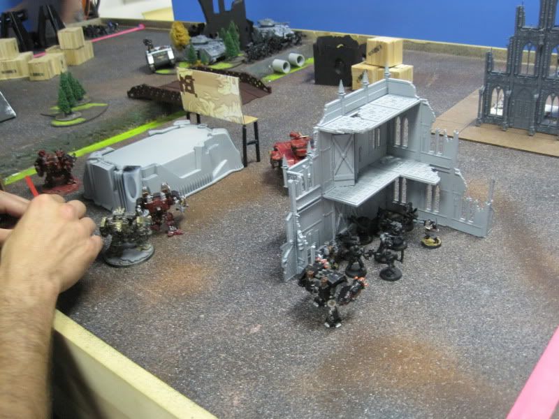 I pull off some moves here that make me very happy. First, damage rolls from shooting FINALLY start resulting in damage, FINALLY killing that damned LasDread. My PlasDread, not having done much all game, charges his