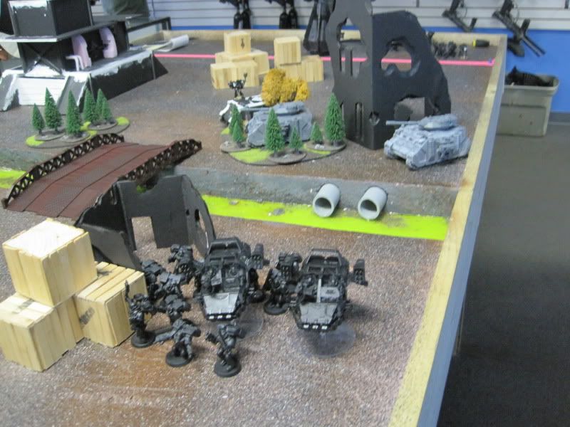 My list fared surprisingly well. I utterly wasted my melta drop troops, feeding him free kill points, but in the end it worked out. It tied him up while I shot at him a bit and killed the rest of his army, while getting into position. Drop Pods continue to prove themselves to me as the best transport for marines.... as you can get them into prime range ASAP. My Rhino provided a nice little bunker but against this army they had nothing to shoot at except with the missile launcher.
