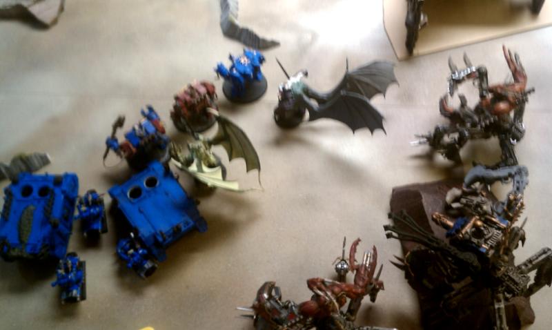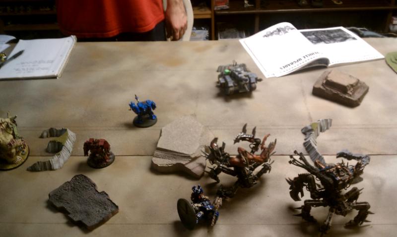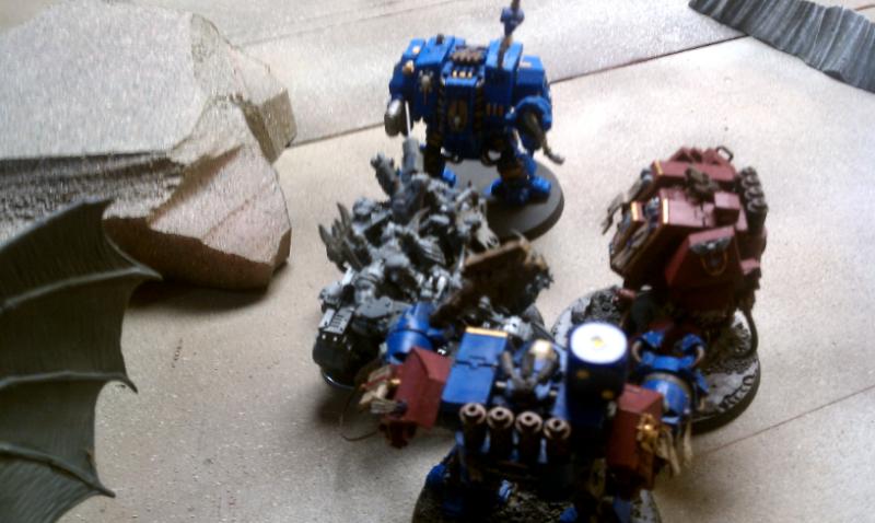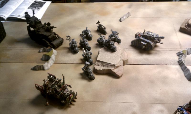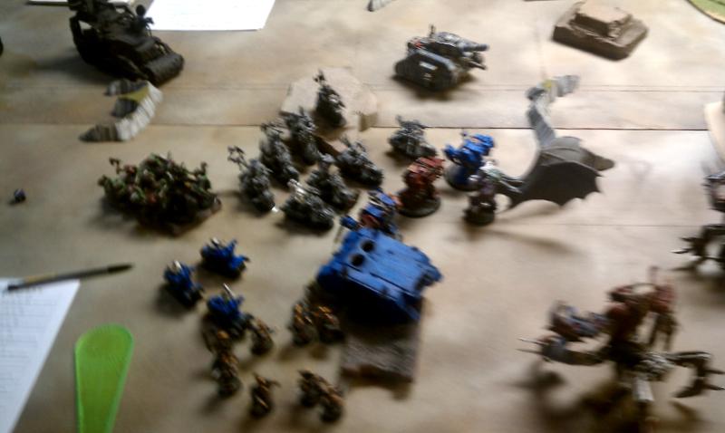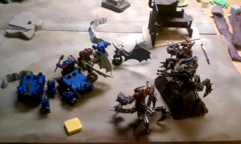 The nob bikers assaulted 2 dreadnoughts and pulled in the rhino, and they ended up getting their collective asses handed to them.