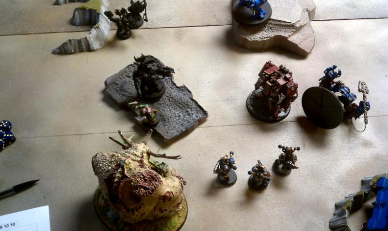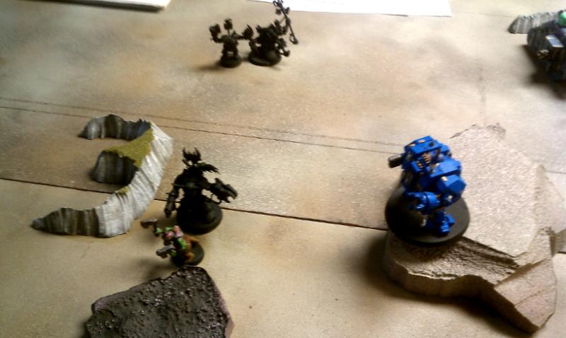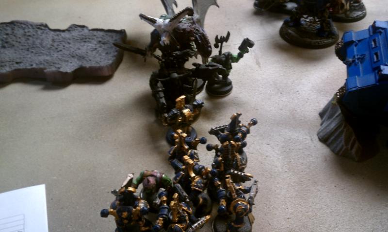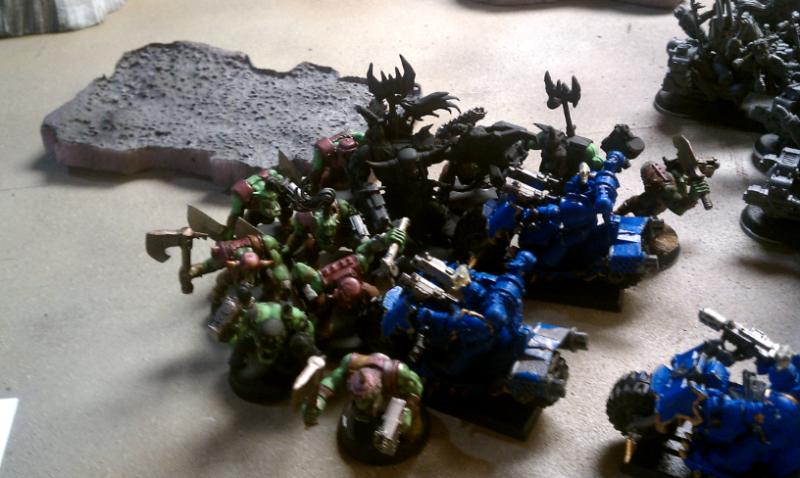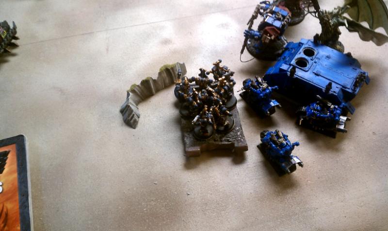 The orks tried to shoot some stuff but really had no effect, except for the squad of lootas popping open a rhino and spilling its cargo of thousand Sons.