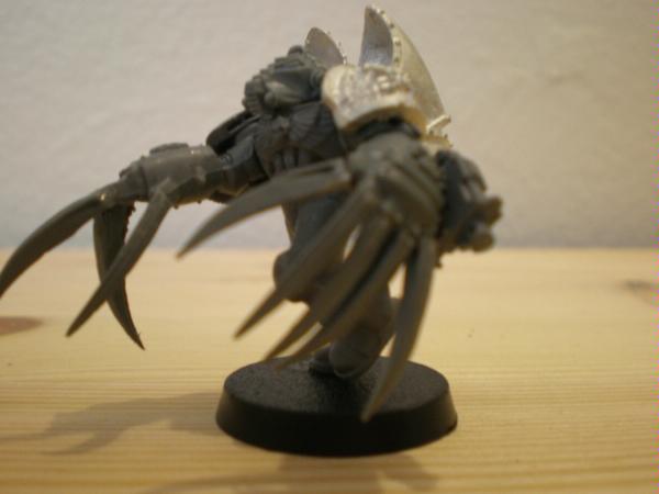 I used a powerfist and cut off the finger to the last knuckle and then shaved and attached gaunt claws to mine. That bit of art from the codex where the wolves are fighting tau are what inspired this.
