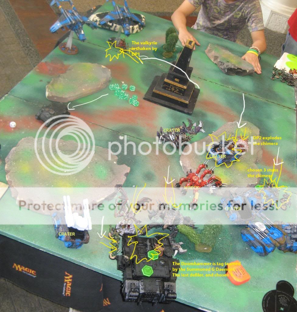 - Chosen 3 must have been shaken badly, as despite it's meltaguns as well as an assault, all it manages to do is to stun the chimera of the PCS. DP1 fails to catch the fast moving valkyrie in aerial combat, but it manages to shake it with a well placed swipe...DP2 however punches through the chimera of the veterans, exploding it and leaving 6 alive...who continue to fight....