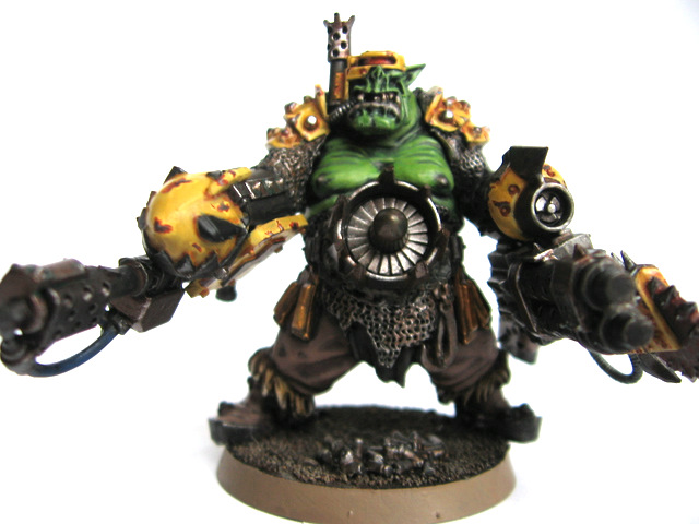 Anyway...I look forward to the exchanging of ideas/inspiration, and hopefully some business, you all have to offer. I will be posting my projects/personal stuff on here or else linking it to my photobucket and look forward to your feedback. Thanks guys – apologies for the slightly long intro…  As an opener I thought I'd post my Ork Warboss - FATDAKKA! and one of his Fat (Flash) Gits...