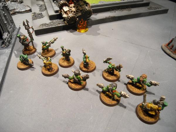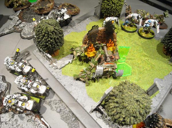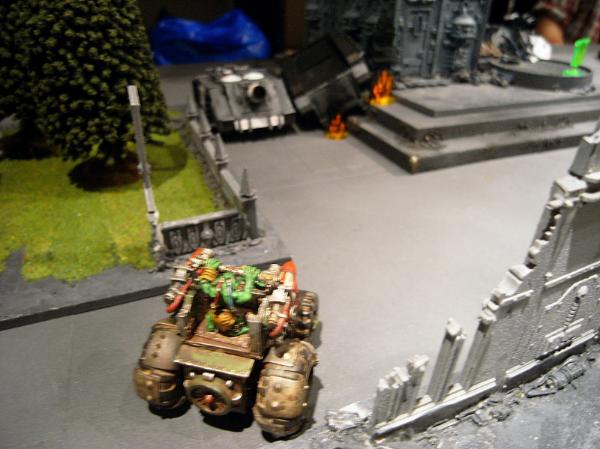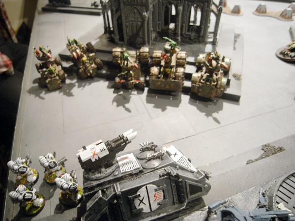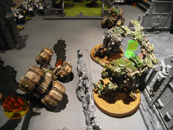 In the Grot second turn the line continues it's advance, wrecking the Dreadnought and one of the Vindicators with buggy rokkits.