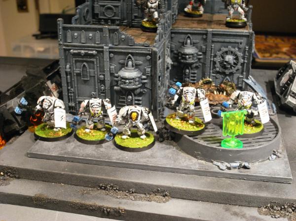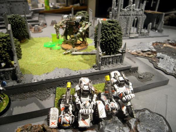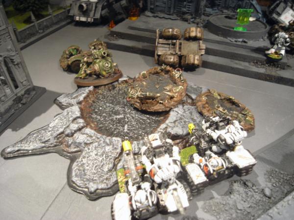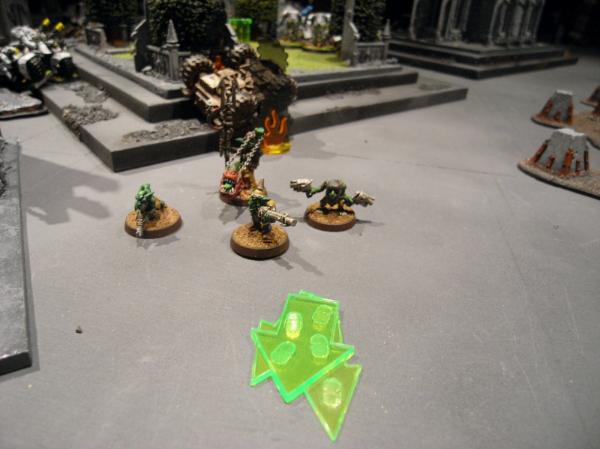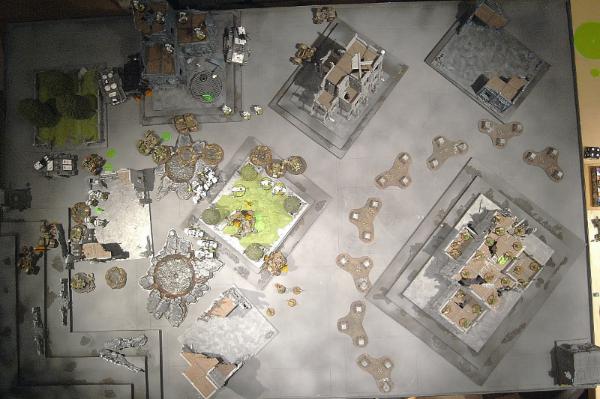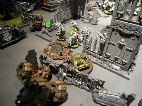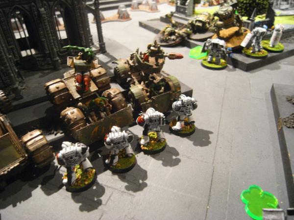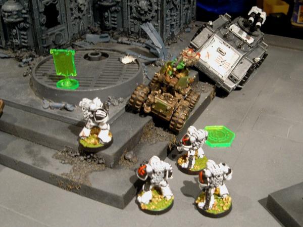 The buggies break and try to contest objectives, while the Terminators wreck the final Kan and consolidate into the central garden, close to the late Grot squad.