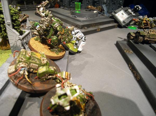In the Marine fourth, the Attack Bikes move up to the lone dread holding the central objective, shaking it and blowing off an arm.
