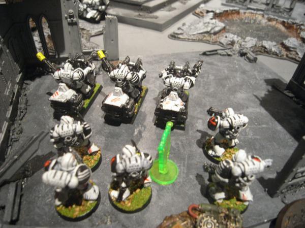 In the Marine second turn, the Assault Terminators arrive and run to just outside Kan assault range...