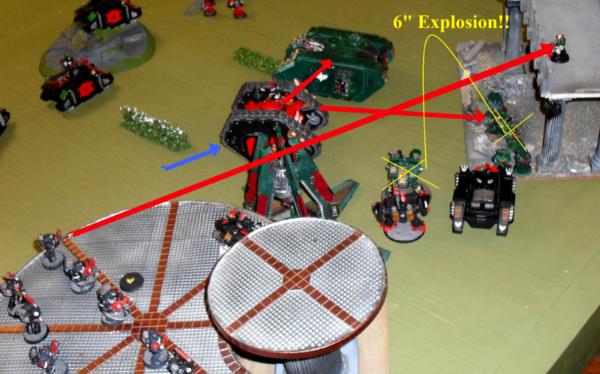 LRC) which to my suprise didn't warrant a 4+ save as i had planned... but they continued to just bounce off its armored hide. The vindicator fired off a "ranging" shot as my opponent put it