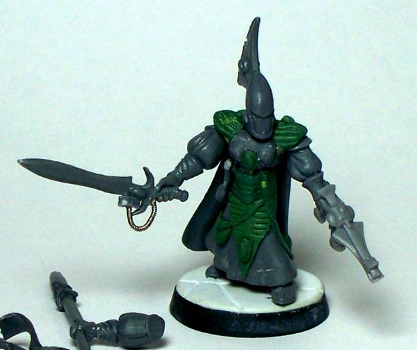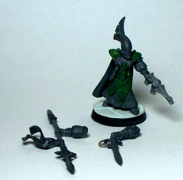 Two of the (eventual) three arm options: witchblade and singing spear. The final option will be a staff or sceptre to represent Eldrad or "Eldradina" if you will.