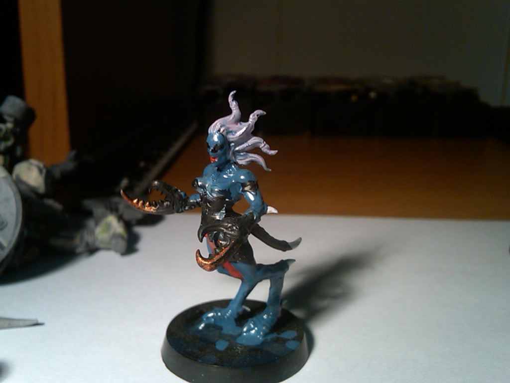 So here we are, chronicling my growth from a majorly terrible painter into a...tabletop passable one. I'm trying to figure out this forum so I'll just start you off with my terrible TERRIBLE first model. Sad thing is, I have most of the same tools I did back then...need new brushes, and need to learn better painting techniques!