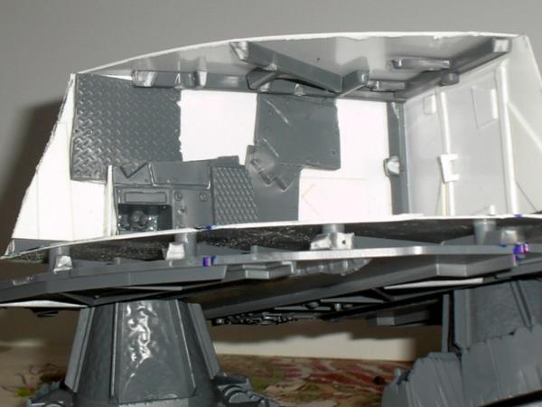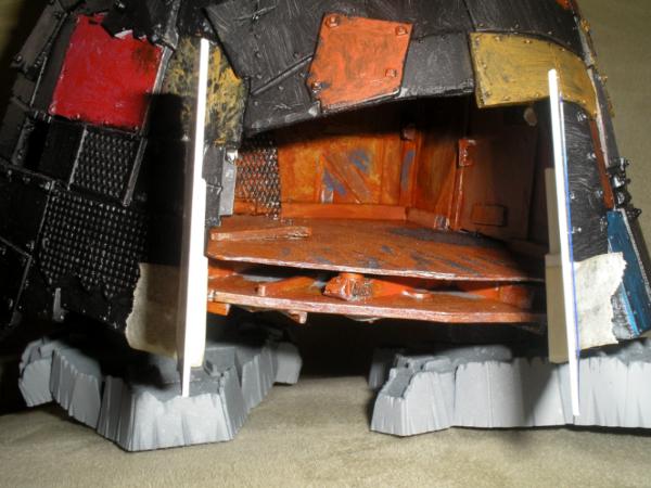 I read up on the Stompa and when I saw that the Stompa can carry 20 Orks I thought that the ONE exit was NOT orky idea:, so I cut the front out and build a troopbay.