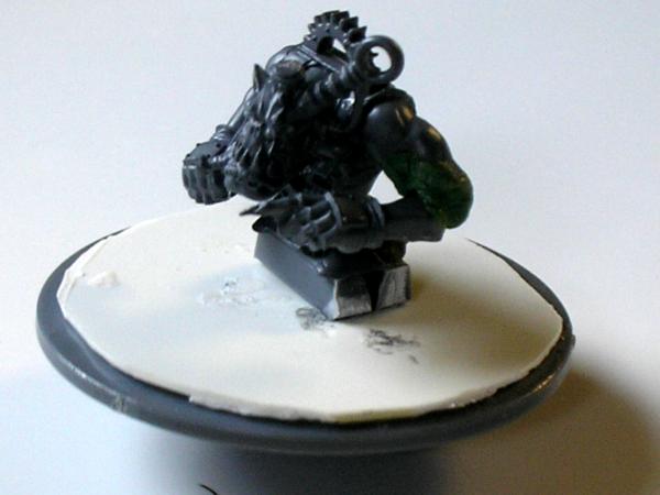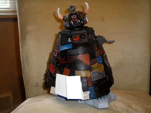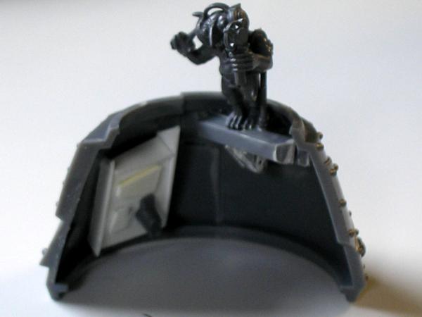 For the head, I really wanted something different, I detailed the interior and instead of having the spotter up in a crow's nest, I put him on top of the head, standing on a rusted metal platform, the Ork pilot was only modified so it looked like it was pressing buttons, the consoles have painted on details.