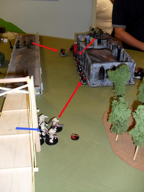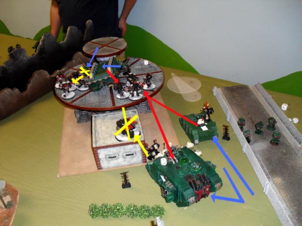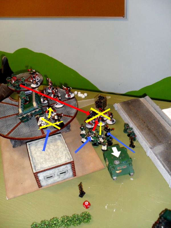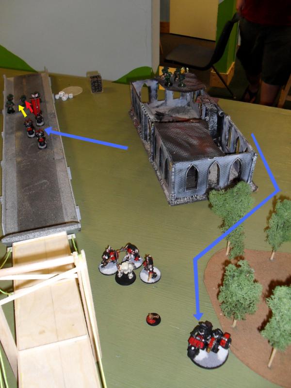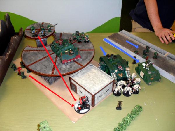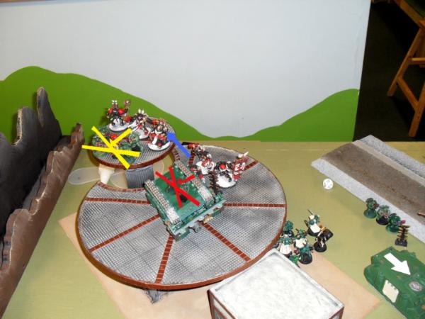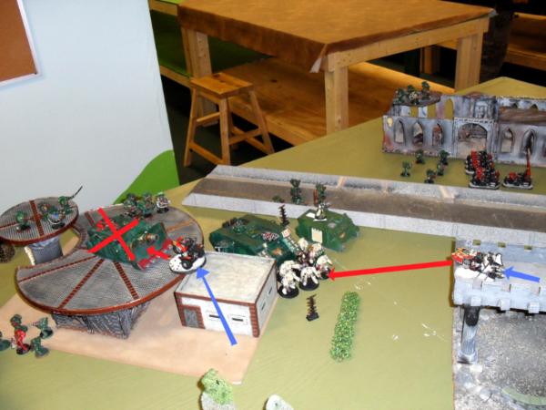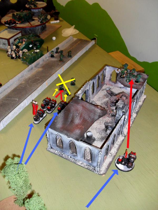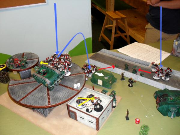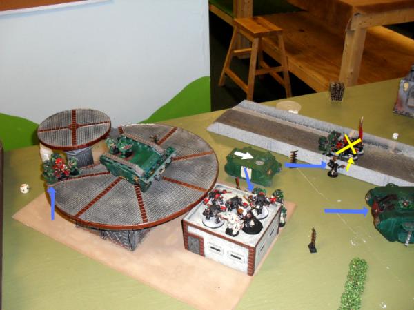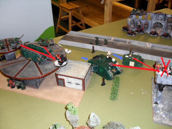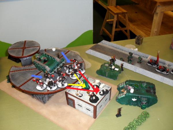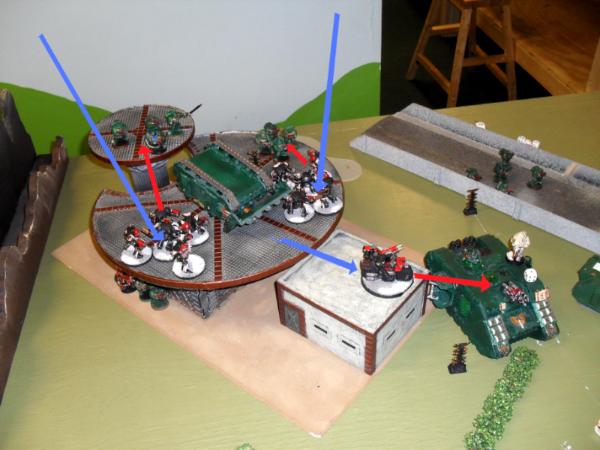 DA chaplain would have made short work of my lone terminator contesting the objective in close combat with the tactical squad while Azrael and his initiative 4 power weapon friends with a 4+ invul save would have made short work of my claiming squad on the helipad provided they made their difficult terrain check to scale up to the landing pad. Granted they would probably be annihilated later by my 3 heroes the next turn but neither of us would have any scoring units on that whole side of the board and they would succeed in robbing me of my scoring unit. The plasma