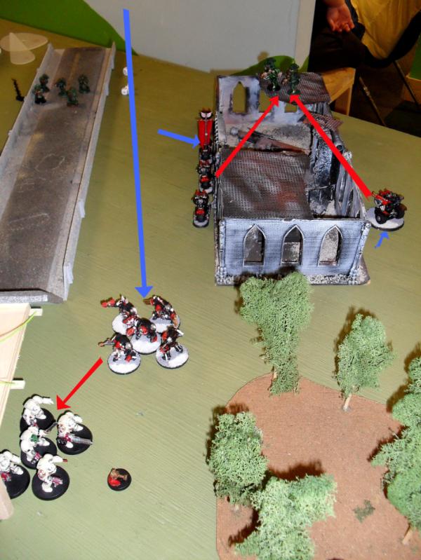 DA belial and chaplain nearly decimated the squads, killing 2 each at initiative 5. The majority of the two squads chose to focus on the regular terminators, killing them all. The two powerfists dedicated to killing the heroes utterly failed with the single wound scored out of the 6 attacks being saved by belial's invulnerable save. LUckily, no one on my side died due to fearless lost combat checks though.