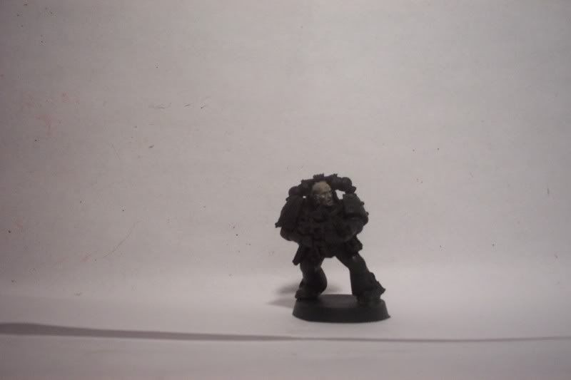 Painted this with a tallarn flesh basecoat, then an ogryn flesh wash. After that I add a 50/50 tallarn flesh/elf flesh mix (simply because I can't afford too many paints) to everything except for the recesses. I then do my fourth step, which is simply highlighting all raised areas with pure elf flesh. I do my eyes by wetting a brush, making a fine point, and colouring the eyes white and then adding two black pupils.