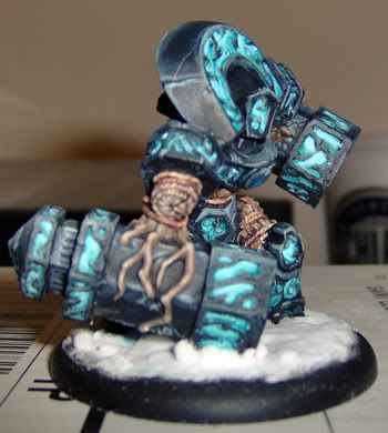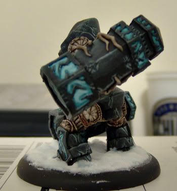 Done for commission. Client uses a blue and silver theme, so I decided to go with Skorne-style obsidian stone with an arcane blue glow. Absolutely adore this model, almost makes me want to start Circle myself...