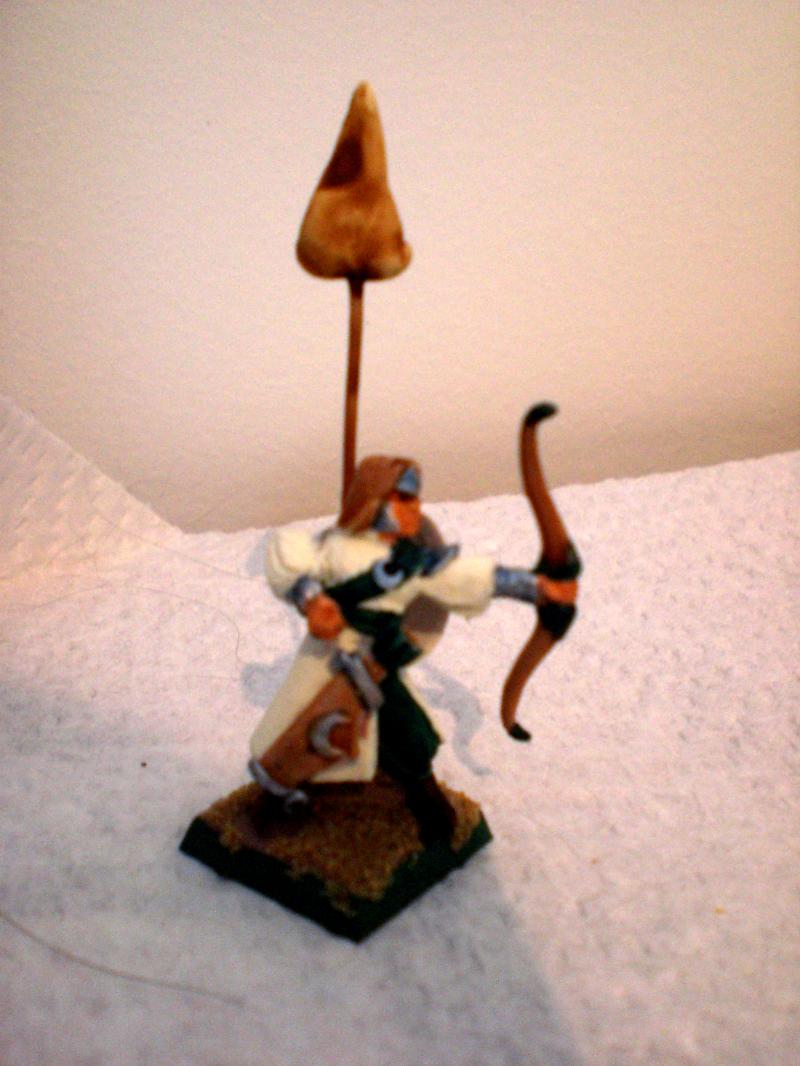 My self-critique: I like each model individually, but as a unit, they are tough to physically put together, the captain especially spills over his base. Hopefully when I get the kneeling archers painted, that should mitigate that problem a bit. Otherwise, I might take some guys off their bases and put them onto a bigger multi-unit base.
