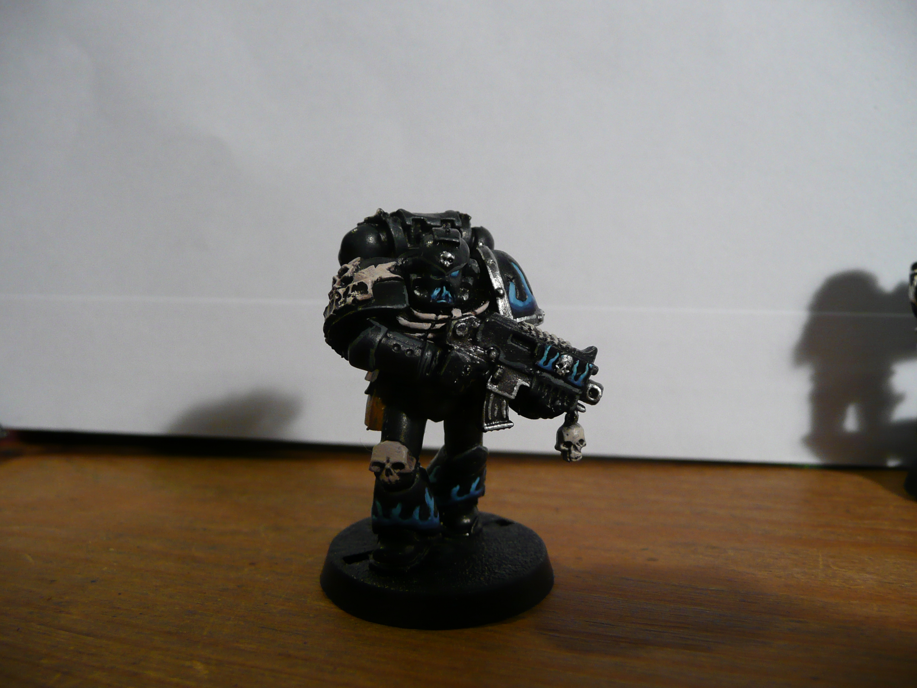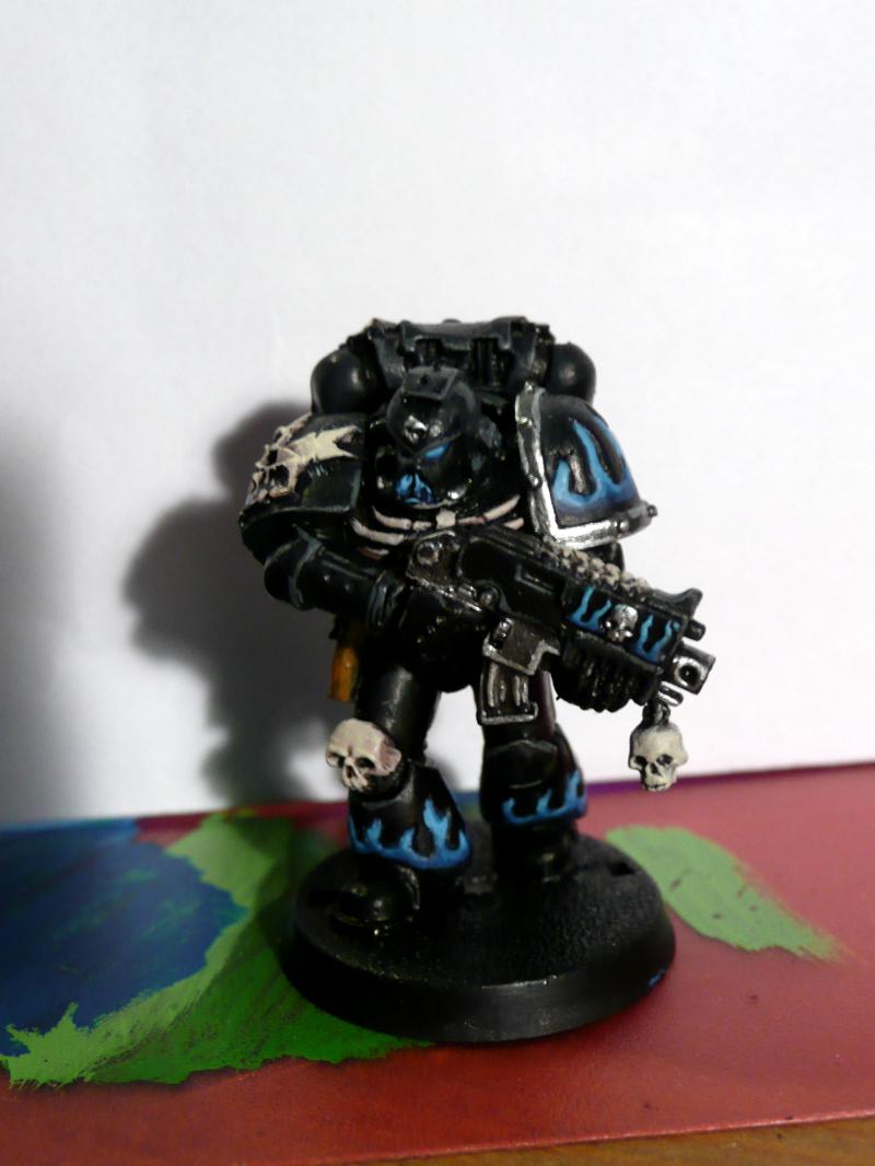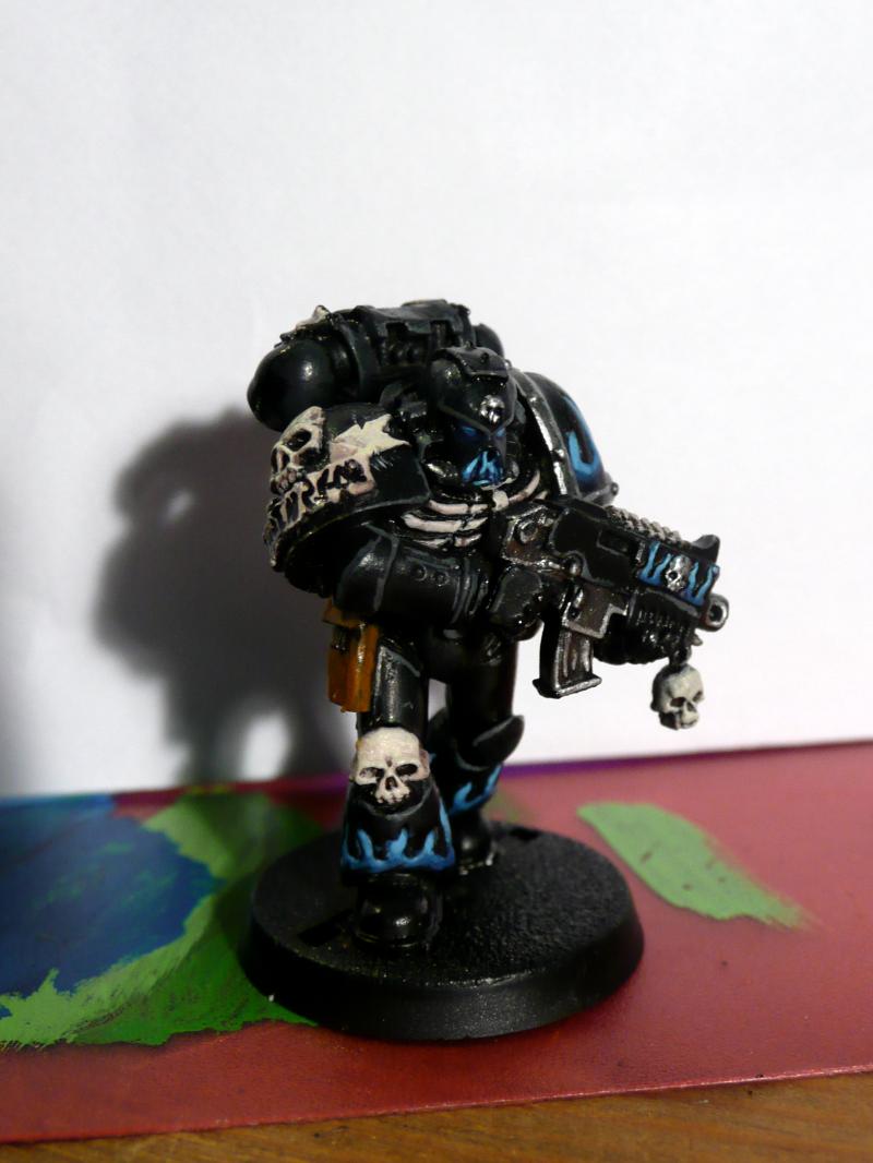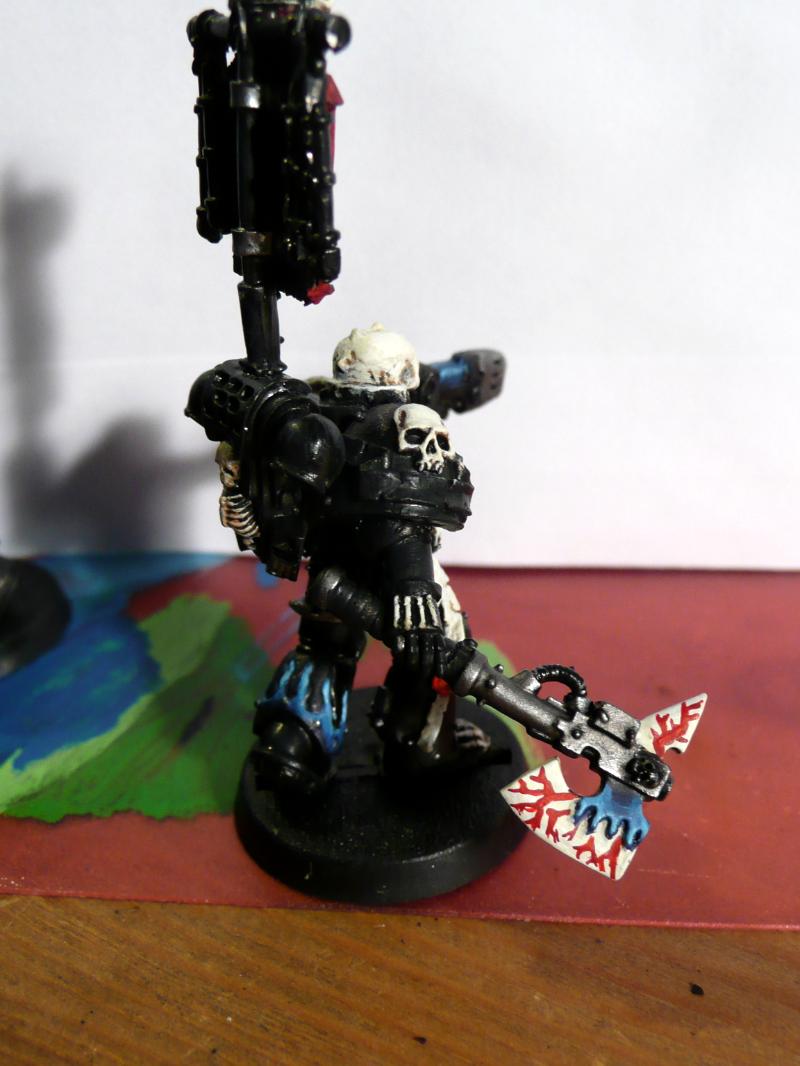 The blue flames look awsome! The red purity seals give nice variety to the all black. Im not sure about the lightning on the Sergeants ax, thou.