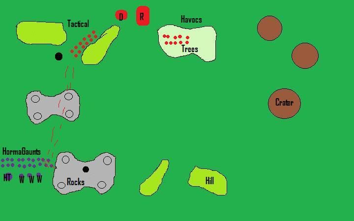 40k game EVER and my FIRST battle report so please bare with me and I hope you enjoy it! I appologize for the pictures in advance...I free handed it all.