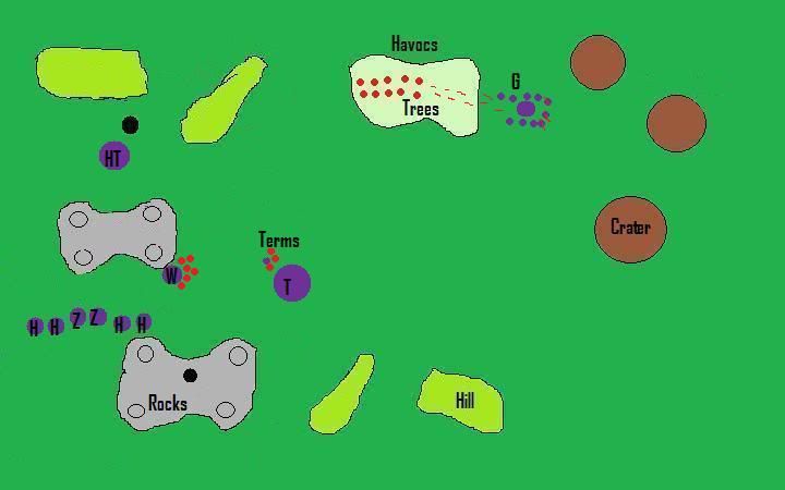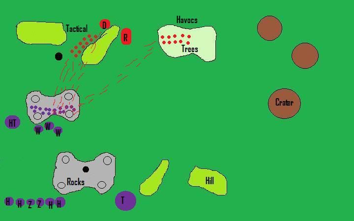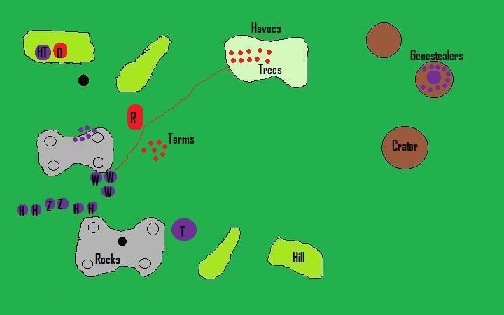 HQ and also consolidating towards the havocs. My Genestealers killed all but 3 Havocs not before all of my genestealers and my broodlord died. They consolidated away from my units.
