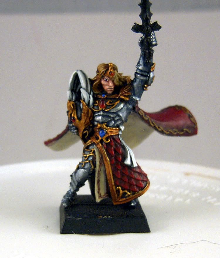 Another tip: turn your mini UPSIDE DOWN when painting eyes. The 'hood' created by the browline on a good sculpt will get in the way if you are holding the model right-side-up.