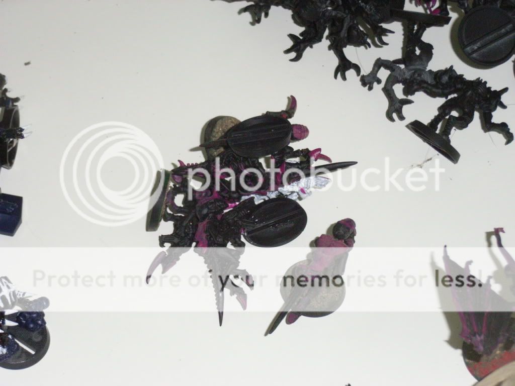 I haven't posted in a while but i have kept on working on my models when possible (school's busy) anyway i ran into a lot of luck recently, a new friend of mine was saying that he used to do warhammer, and, seeing as he'd left the hobby he decided to give me his old tyranid models. The models are in pretty good nick, if a bit outdated, i got 2 really old carnifexes that i'll probably just scavenge for parts as well a a biovore, red terror, ravener, 2 gargoyles, as well as about 20 or so genestealers and so termaguants.