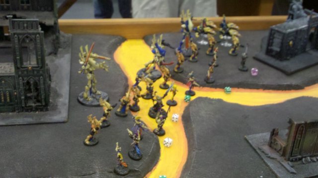 With two wins and loss, I tied for 3rd of the 20 players attending (small for our events, but we had to cap it because there was also a bloodbowl tournament and a fantasy tournament scheduled for the same day.) I think that at least five of the players there were running space wolves, probably more. I know there were 2 orks (Best overall and Best general were both orks), 2 blood angels, 2 mech guard, 2 tau, 1 vanilla marine, 1 daemon, 1 dark eldar, and 2 chaos marine armies (plus my 1 eldar)