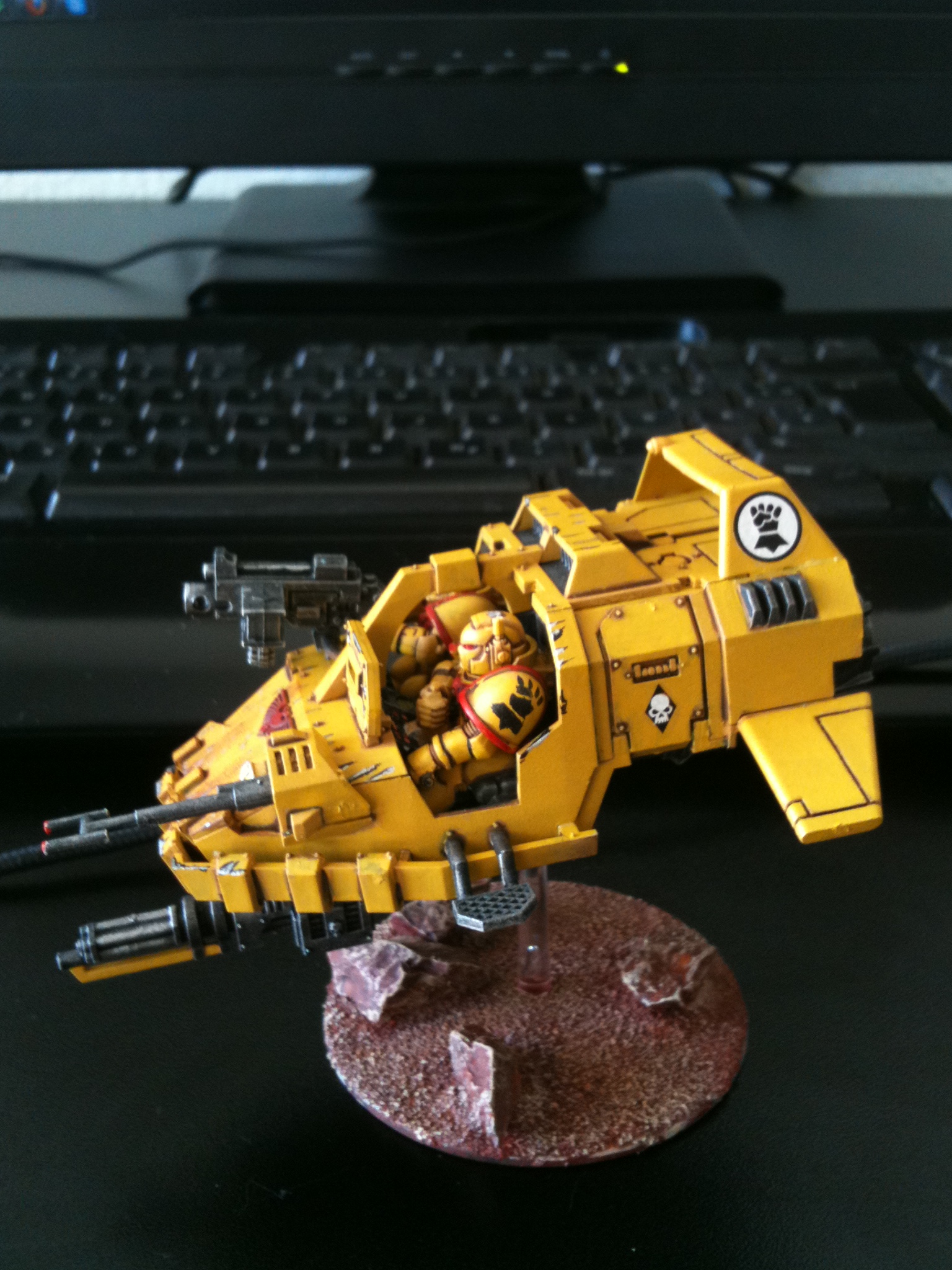 Whenever someone's P&M Blog (which might be a good place to move this) makes me want to start the army they've posted, I know it's excellent work. And now I want an IF army! The landspeeder and drop pod are truly magnificent. I would like to see more of that same balance between clean, bright yellow and battle damage on the Dready, who seems a bit too busy. Really looking forward to more!