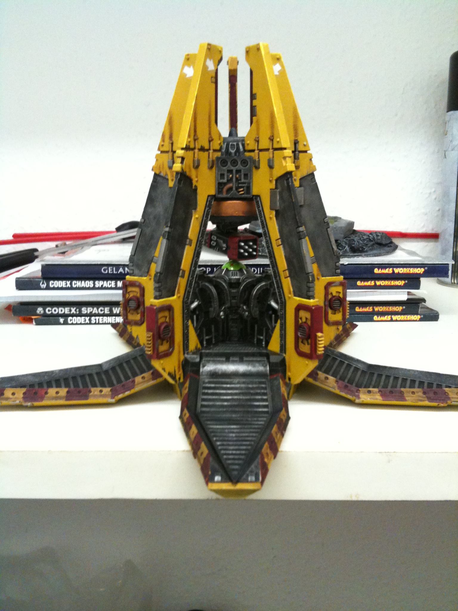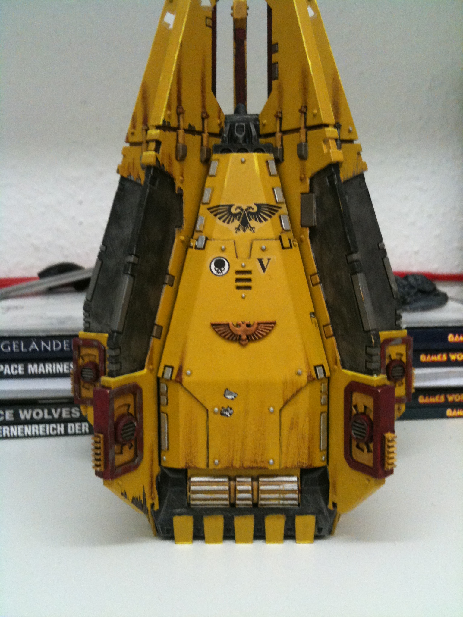 These look really good, yellow is really hard to do and you have done it beautifully. One thing, mabye make the bottom of the drop pod a little more burnt and black like the dread, it will look a little for real