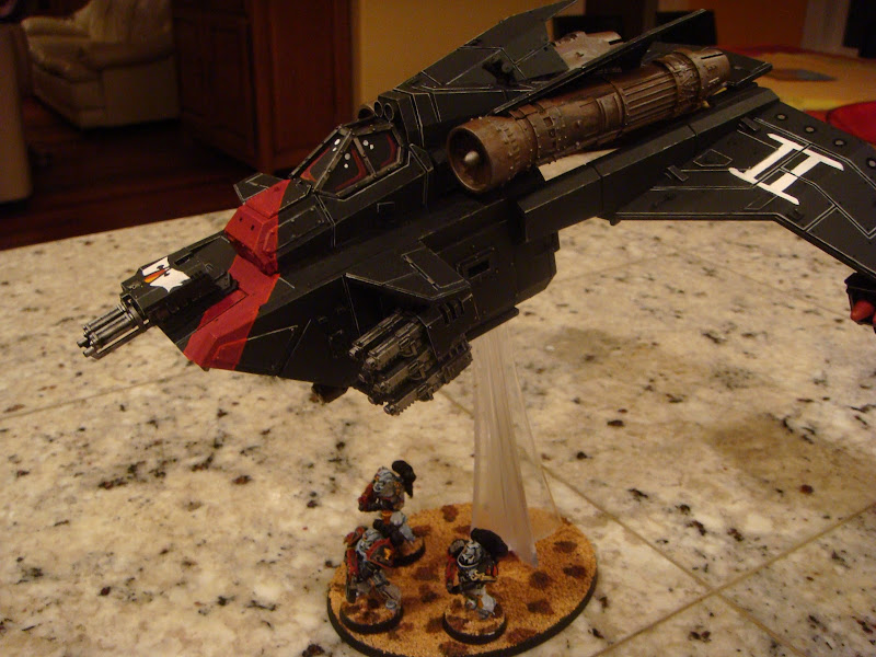 3: Its actually White, Asurmen Blue and then drybrush white with then highlight white which makes me sad when you are right and just looks like space wolf grey. Also the reasoning is that my entire army is painted in those white colors except DC has white helmets and black arms/shoulders while the rest has Yellow Helmets but White bodies. With all the 9 Tanks in the army being that color, it really makes the Stormraven stand out.