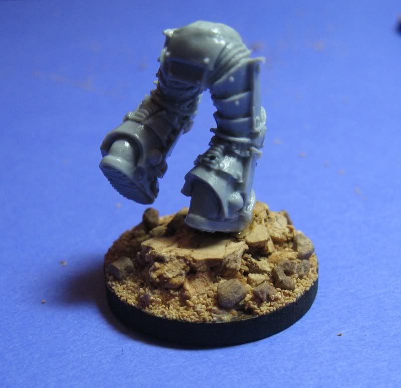 I want the sergeant to look dynamic, so I chose the running legs and then selected a base that would allow his left foot to hand in mid-air, so that he appears to be running.