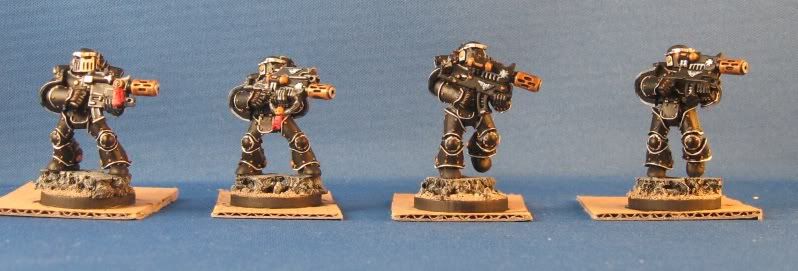 kronk wrote:I'm calling it a night, but here's how far I got on the next 4 sternguard. Each is sporting a combi-melta. I tried a few variations, plus I used an actual combi-melta.