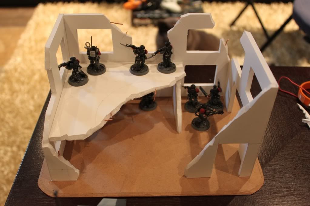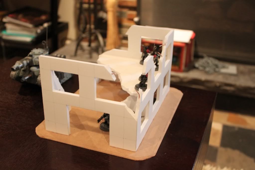 I highly suggest that you go to your nearest art supply store, get some Masonite and foam board, and use that to make ruined structures. I have a WIP ruined building that I made using about $5 worth of supplies. There's some pics below.
