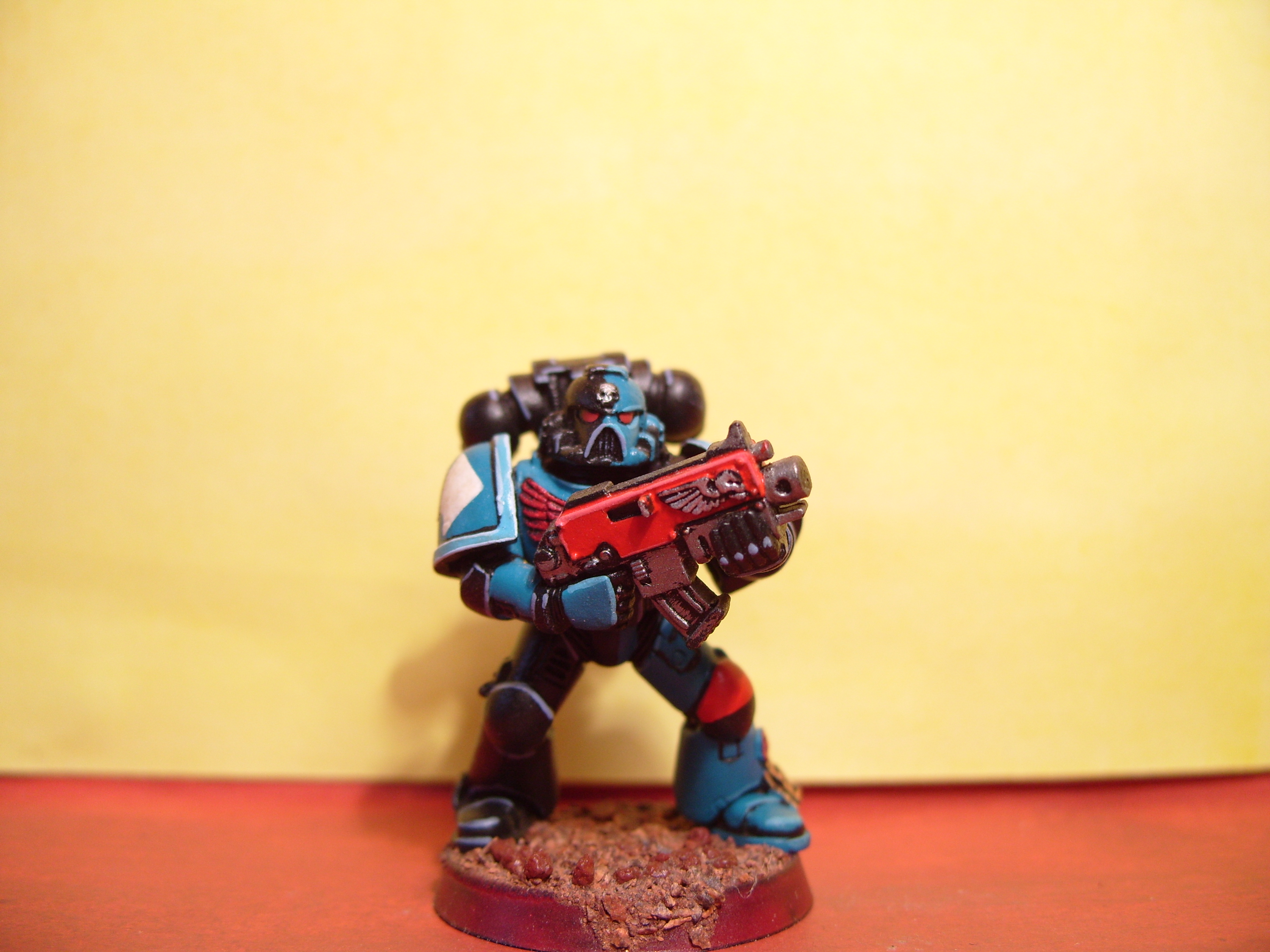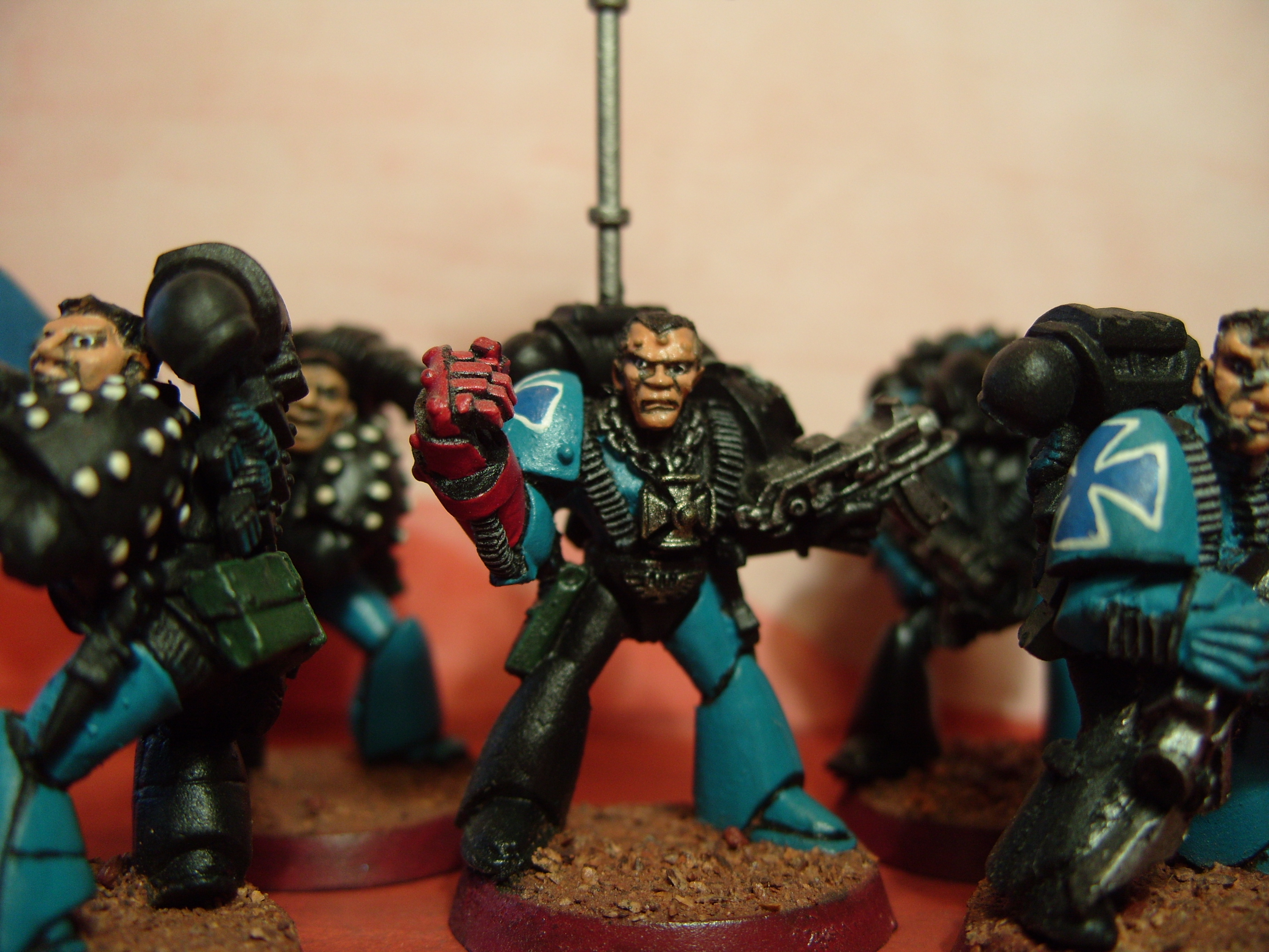 Thanks for the comments. I intend to do a full army shot if I can work out how to get them all in. The reason it took two years was that I tend to build them all before I start painting. Sounds fine until you realise that I started out with 180 of them! Well over codex number but I couldn't stop buying stuff. The original plan was to make two armies but that idea was scrapped. Then the new marine plastics arrived and all hell broke loose. Also it didn't translate very well in my picture but the colour is Hawk Turquoise, the old plastic bottle version.