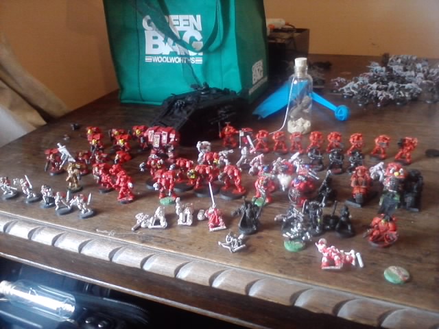 concider posting to australia postcode 5290, i have a ba army im thinking of geting rid of, i have 2 tactical squads, a devastator squad, death company with lemartes, 8 terminators 1 heave flamer, auto cannon and whirlwhind included, dante and honour guard, assult squad, 5 scouts 2 with snipers, 3 bikers, aobr dread, landraider, memiston, courblo and a tech marine, im pretty shure thats it but theres prob more.