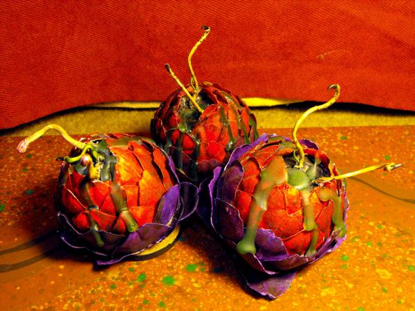 I've been quickly tossing these together as the need for more mycetic spores presents itself. The body of them is a toy artichoke, bought at Michaels' for a dollar. The ooze is just hot glue that's been washed with Thraka Green.