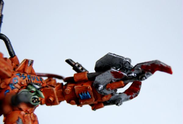 With some plasticard and rivets (and a few orky-looking detail bits from the bits box), a klaw is fairly easy to scratch build, especially if you design it not to need fiddly pistons (although they do look cool).