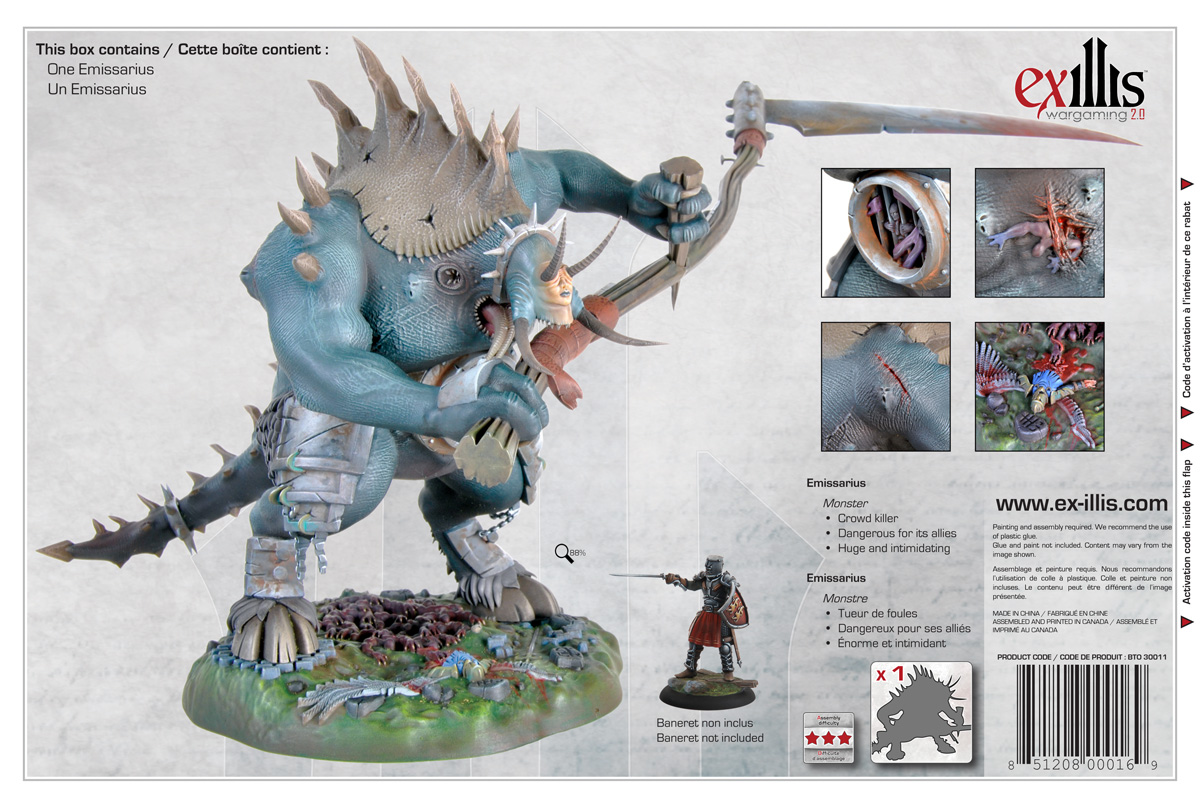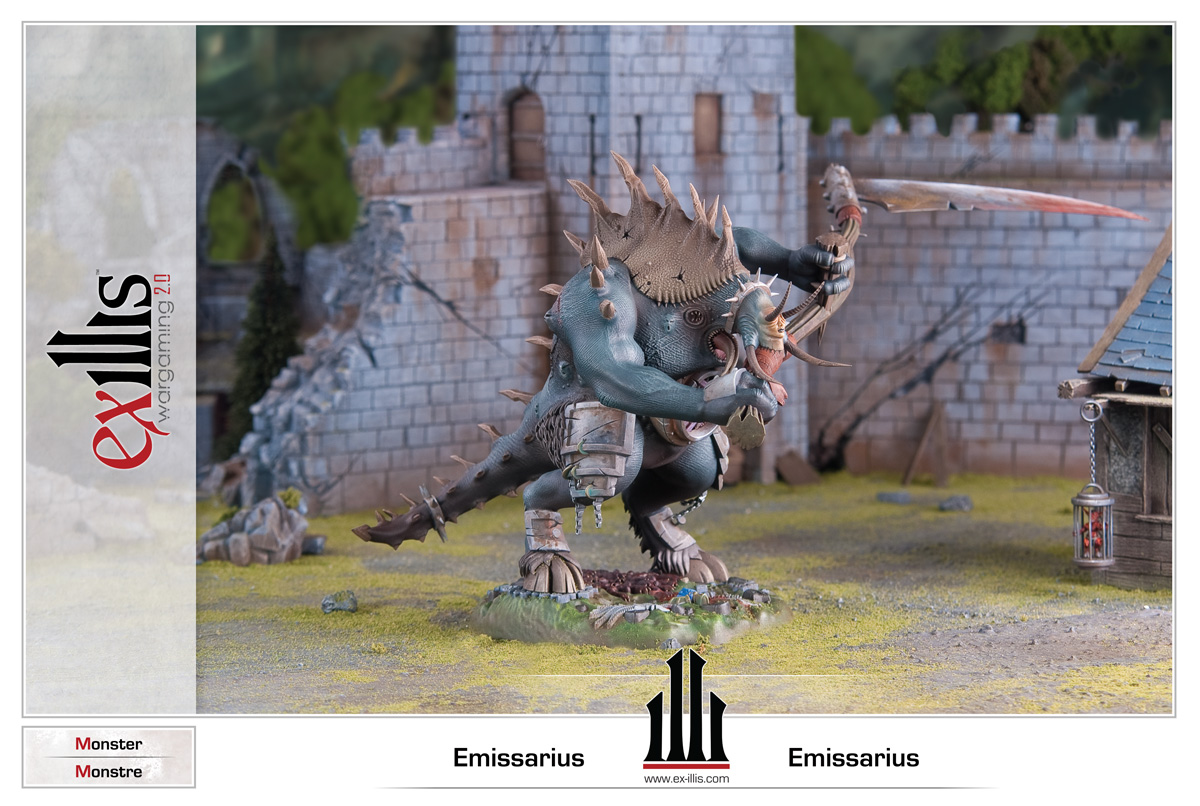 The Emissarius is a huge monster armed with a scythe as big and impressive as the beast. It can kill amazing amounts of foes in range, though its hits are quite inaccurate. Its arsenal does not stop there since the creature can also throw big stones picked on the ground, as movable artillery. And its cries are so terrifying that their effect is instantaneous on the whole battlefield.