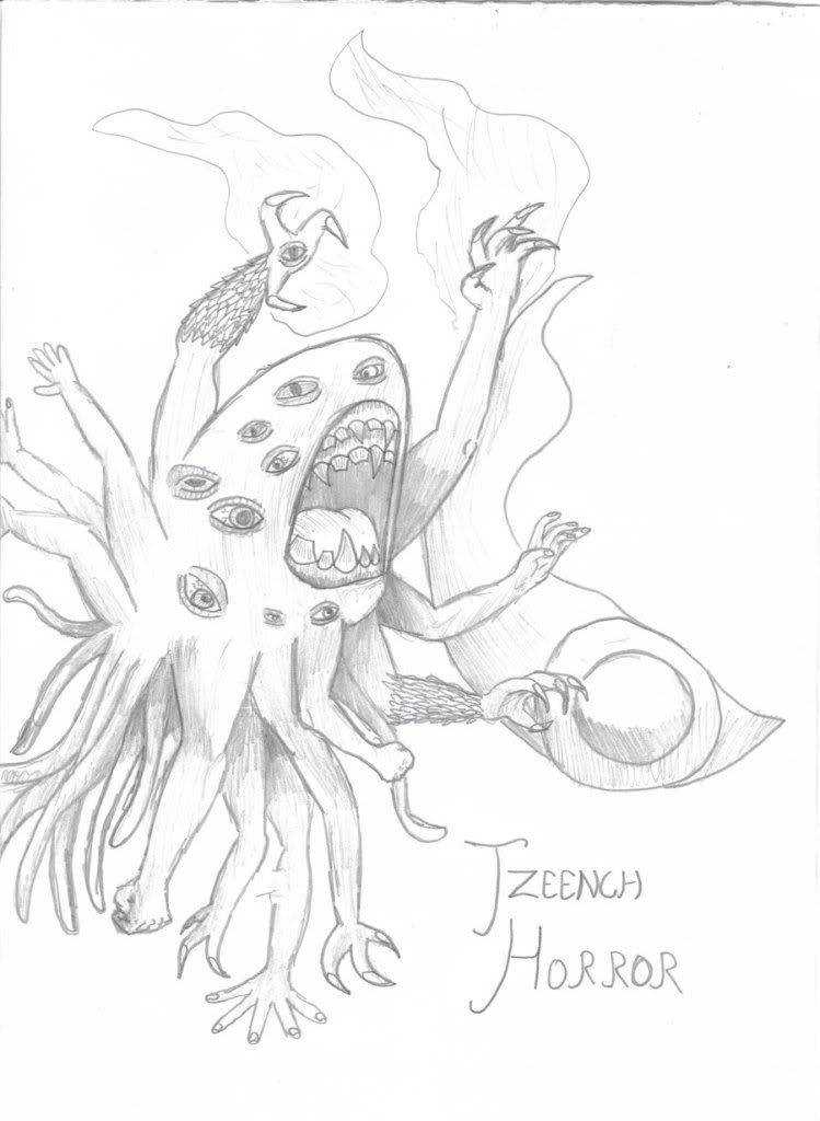 Actualy I think I like the horror sketch the most out of them all my only critique would be the arms/body/tneticle area seems a bit flat. it appears to have lost its shape some blending and shade in this area might help or maybe you need to stick a bunch of spikes/sticks/straws into a potato or something to see how the area would change as it continues around the side,,, hope that helps also the deamonette seems fine to me its possibly a rude but these are creatures that are supposed to be horrificaly beautiful and seductive. but everyone who dosen't know what it is will be a bit like "eww nerdy geek is drawing naked women"
