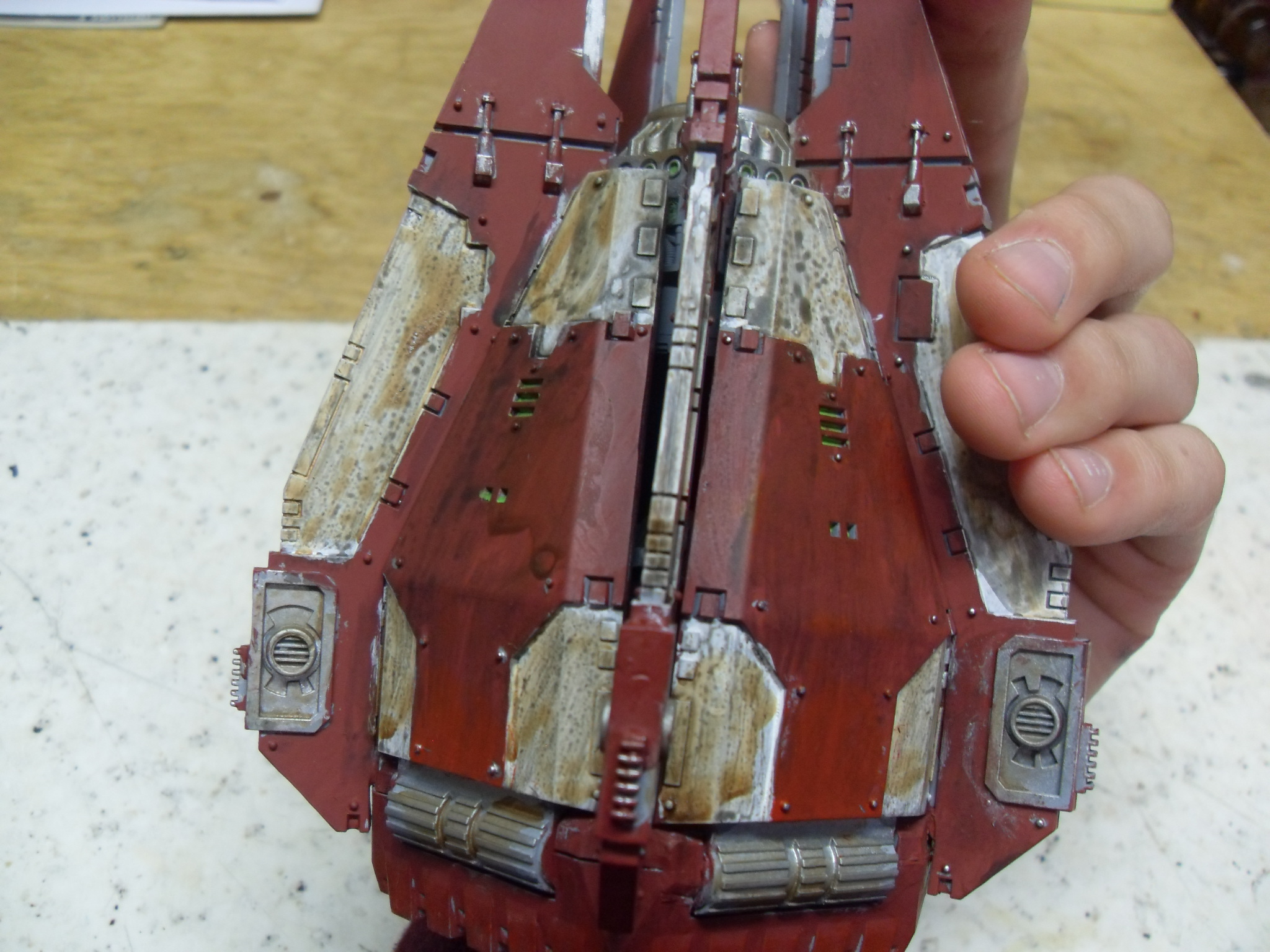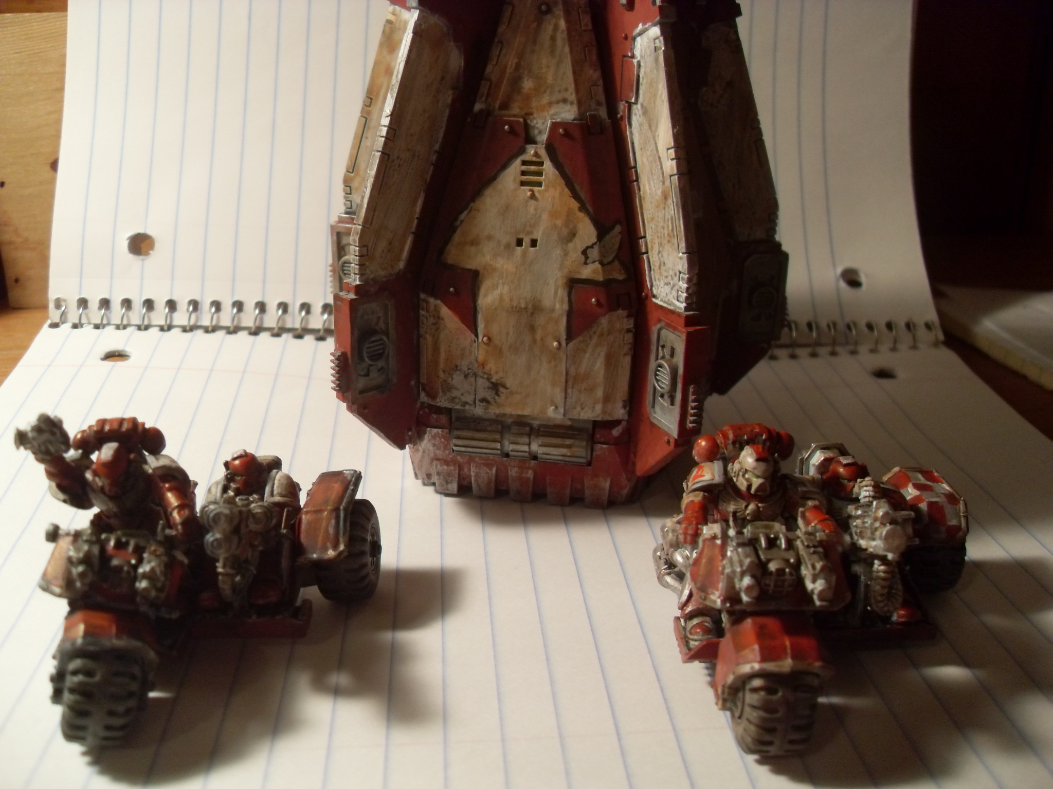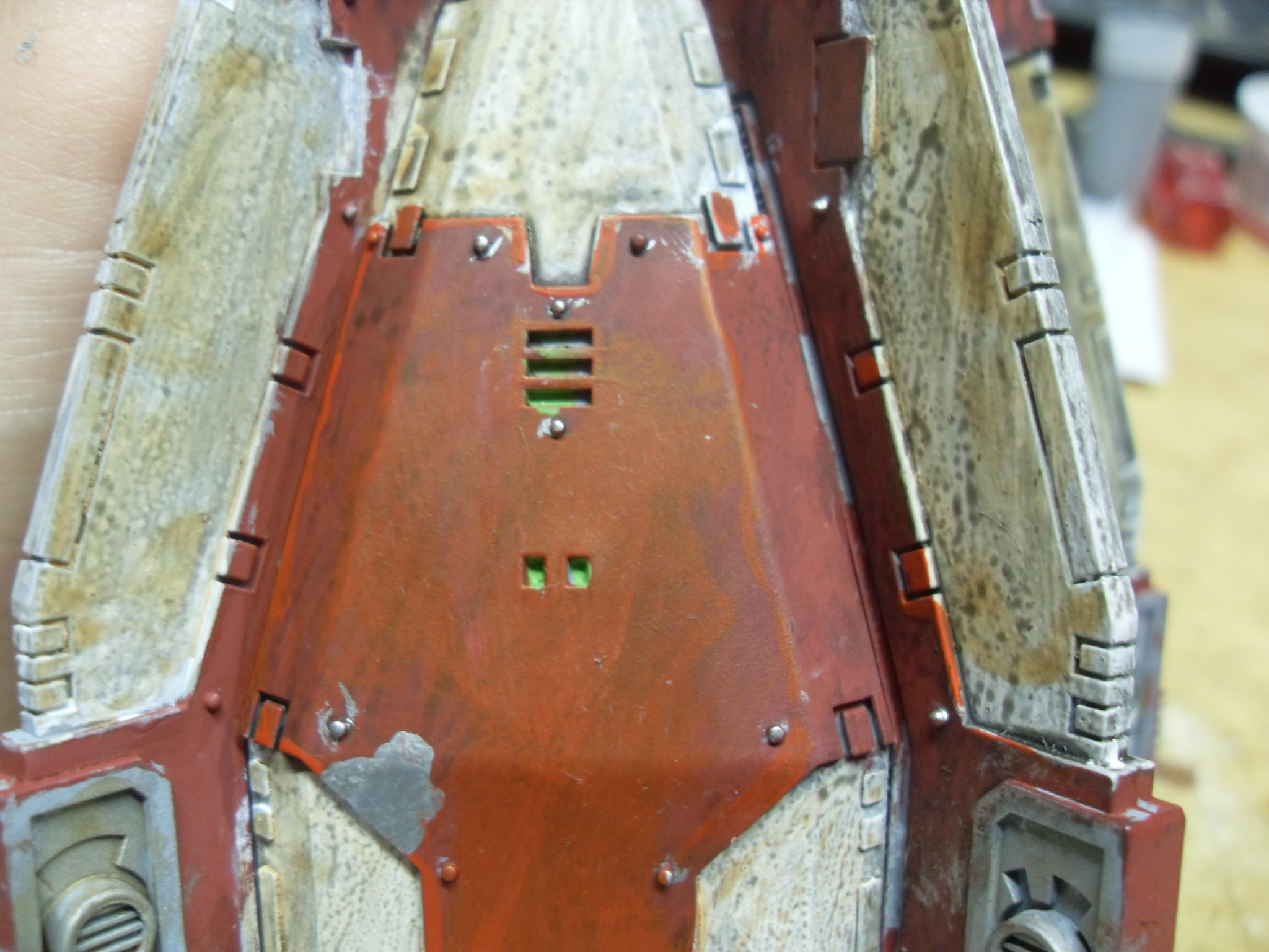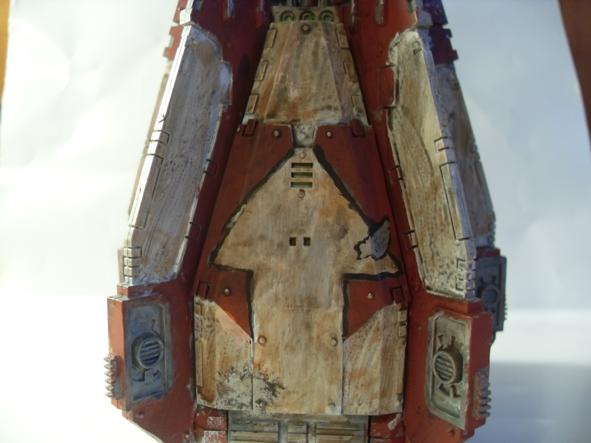 Your free hand "We are Alpha and Omega" on the drop pod.. Next time get yourself some painters tape, lay it across the model and them paint your lines, you will find your lines will be nice and straight that way.