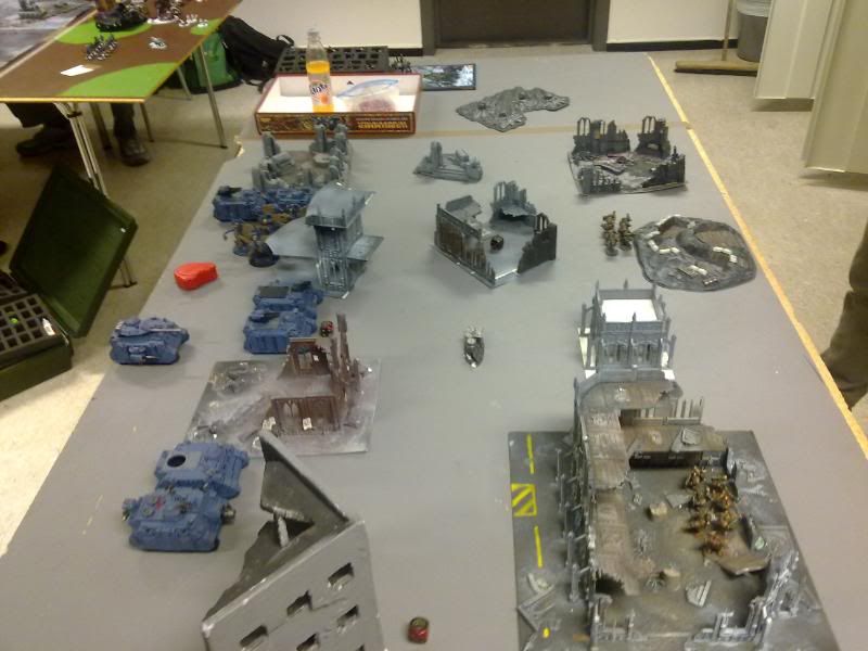 Chaos player deploys the plague marines and leaving the rest of his army in deep strike, while I deploy even across the board. With the scouts in outflank.