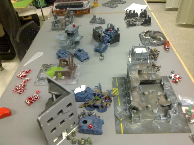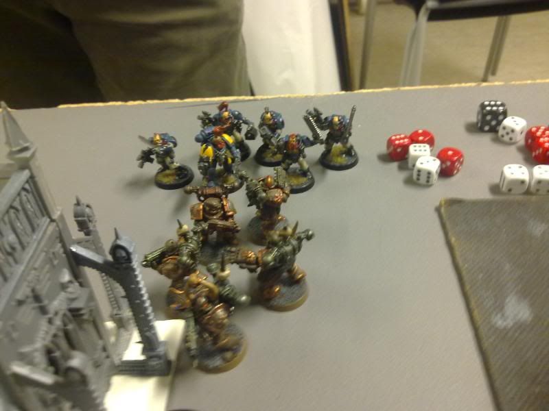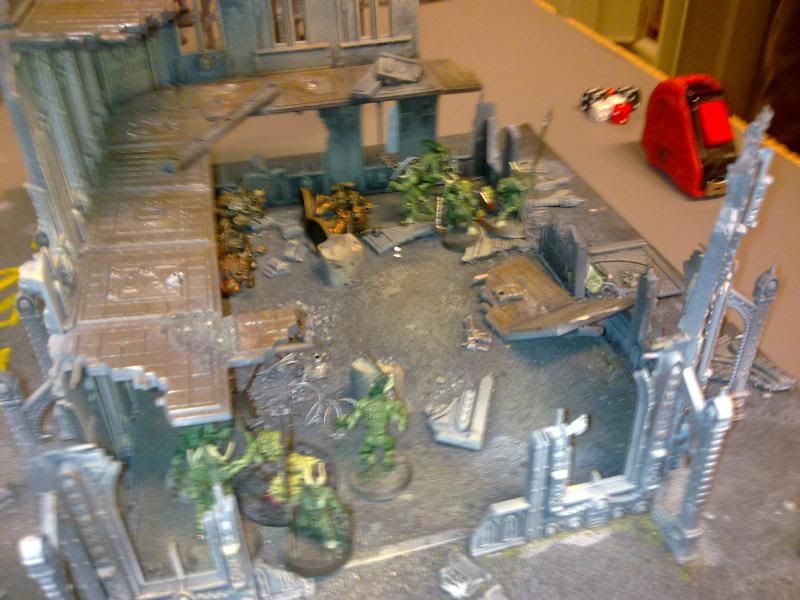 I have lost nothing, and have killed of his center plague marines with icon. Leaving him to a corner or deep strike without scatter. My thunder wolves also have a very good position in the center in a ruin for cover.