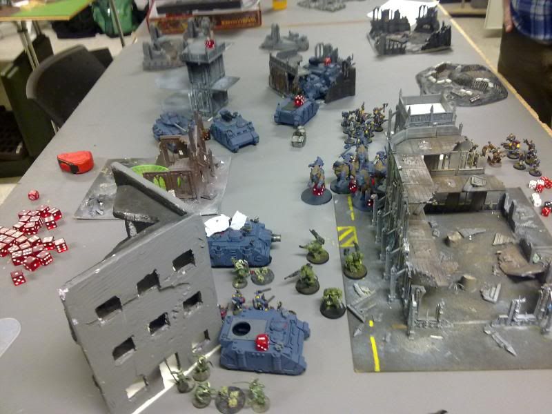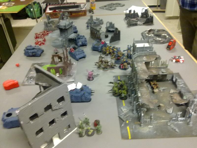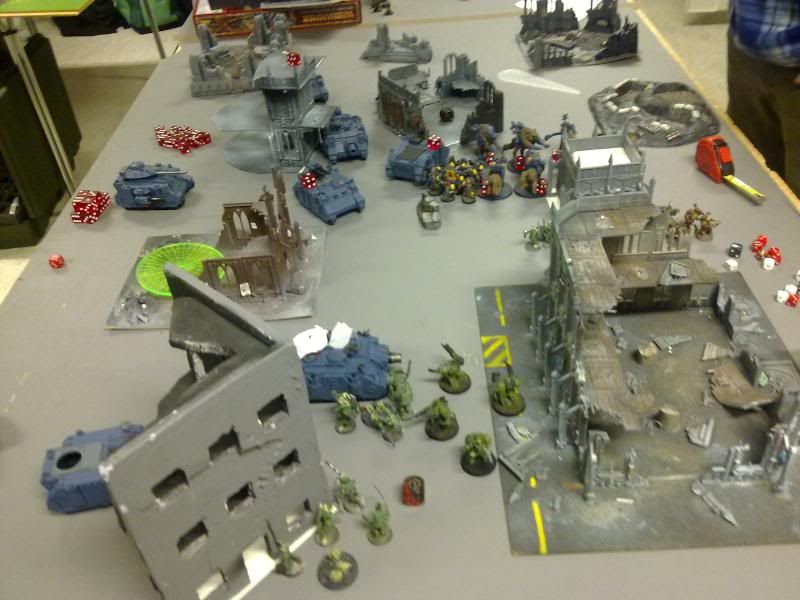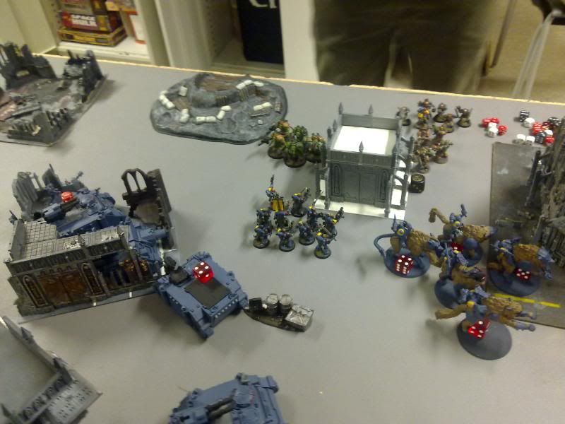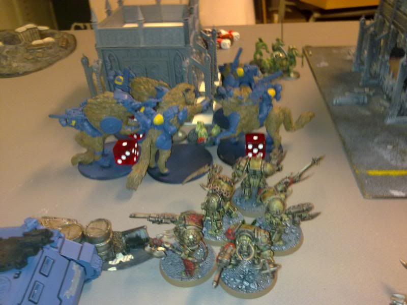 Well I thought I was in trouble with since the thunder wolves was locked in combat, but a luck round of shooting saved me, not only killing the terminator and Typhus, but both obliterators as well.